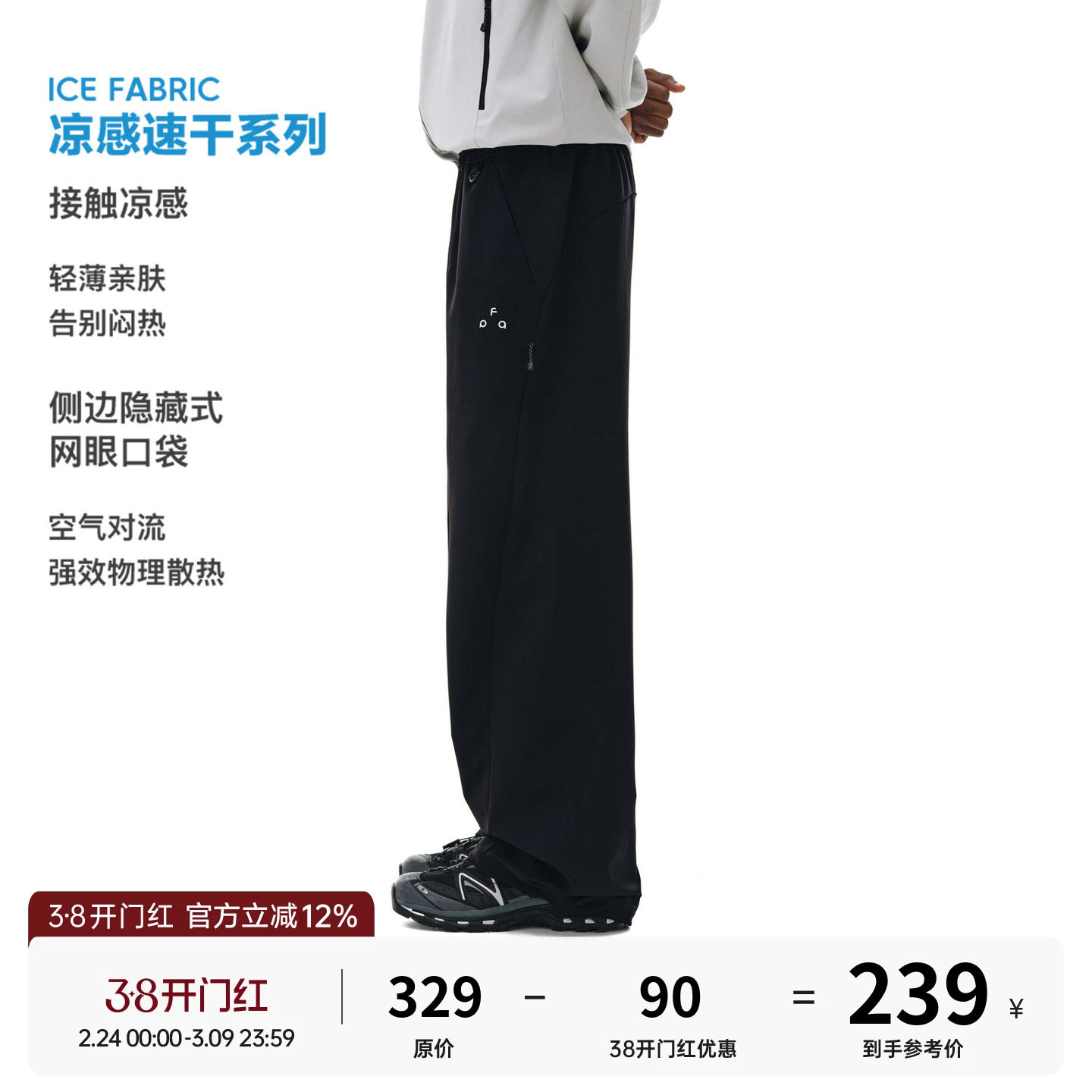 FPA outdoor loose soft shell fleece thickened skin-friendly arc cut trousers National tide straight athleisure pants for men