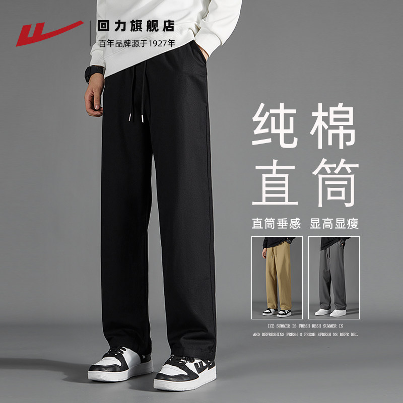 Pull-back pants men's spring 2026 new straight-leg sweatpants pure cotton trousers men's loose drape slacks