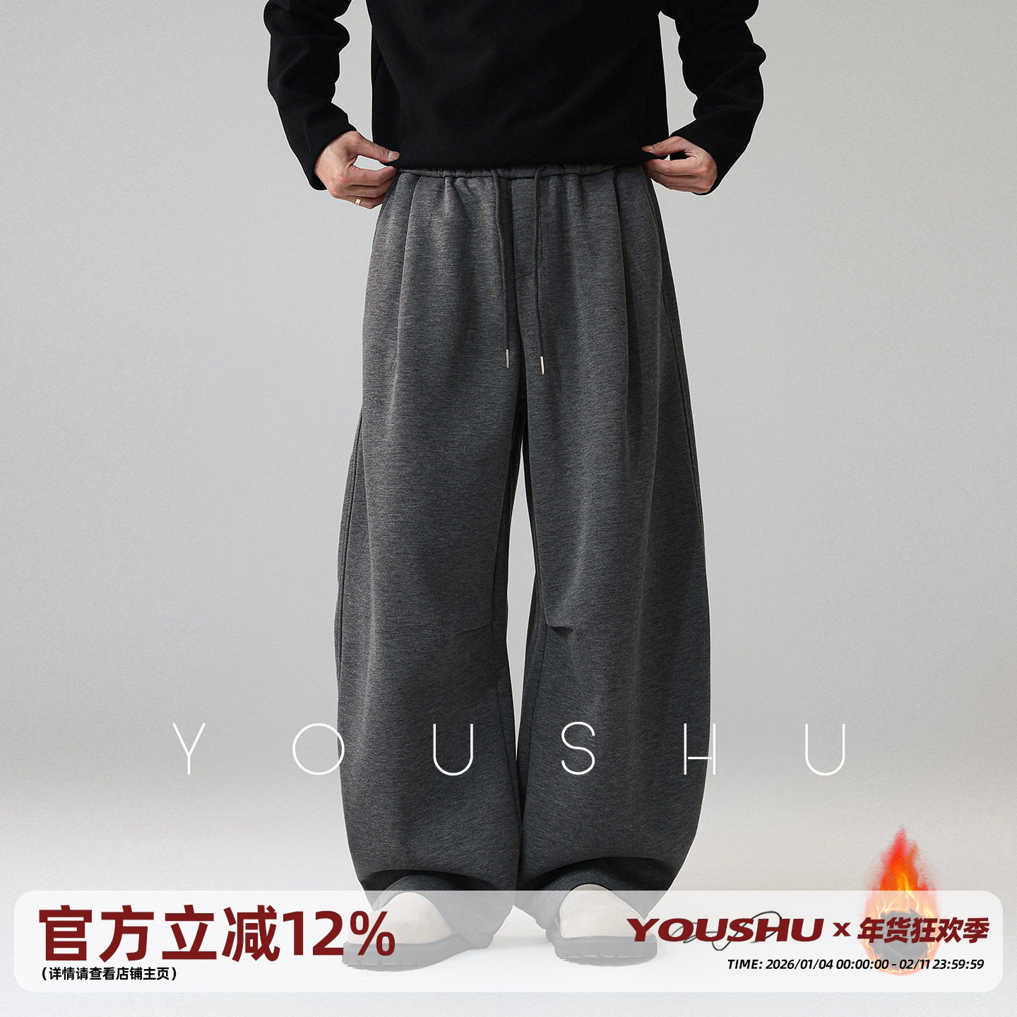 Youshu three-dimensional drape, loose wide-leg fleece pants, men's winter 2025 new trendy scimitar pants slacks