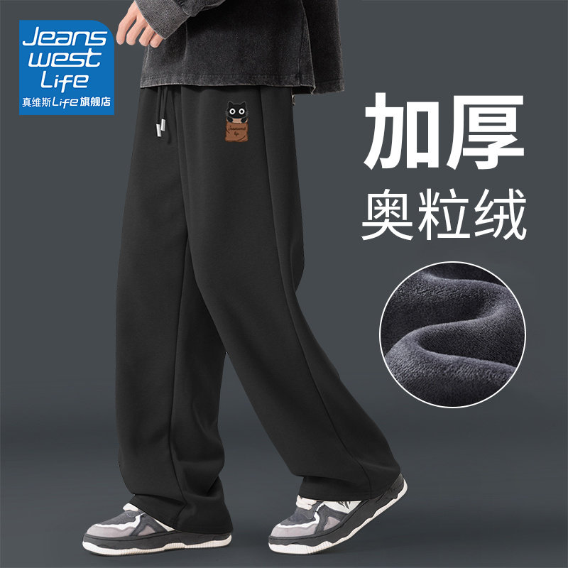 it: CHOCOOLATE black leggings slacks men's autumn and winter fleece loose trendy brand heavy sports sweatpants