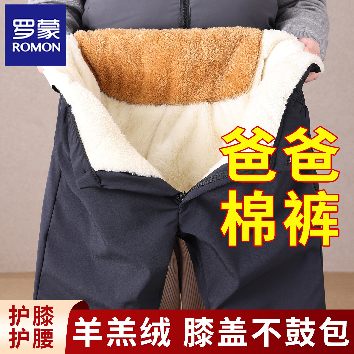 Romond's dad pants are fleece and thickened slacks in winter, and men's middle-aged and elderly lambswool cotton pants are worn outside, warm men's pants