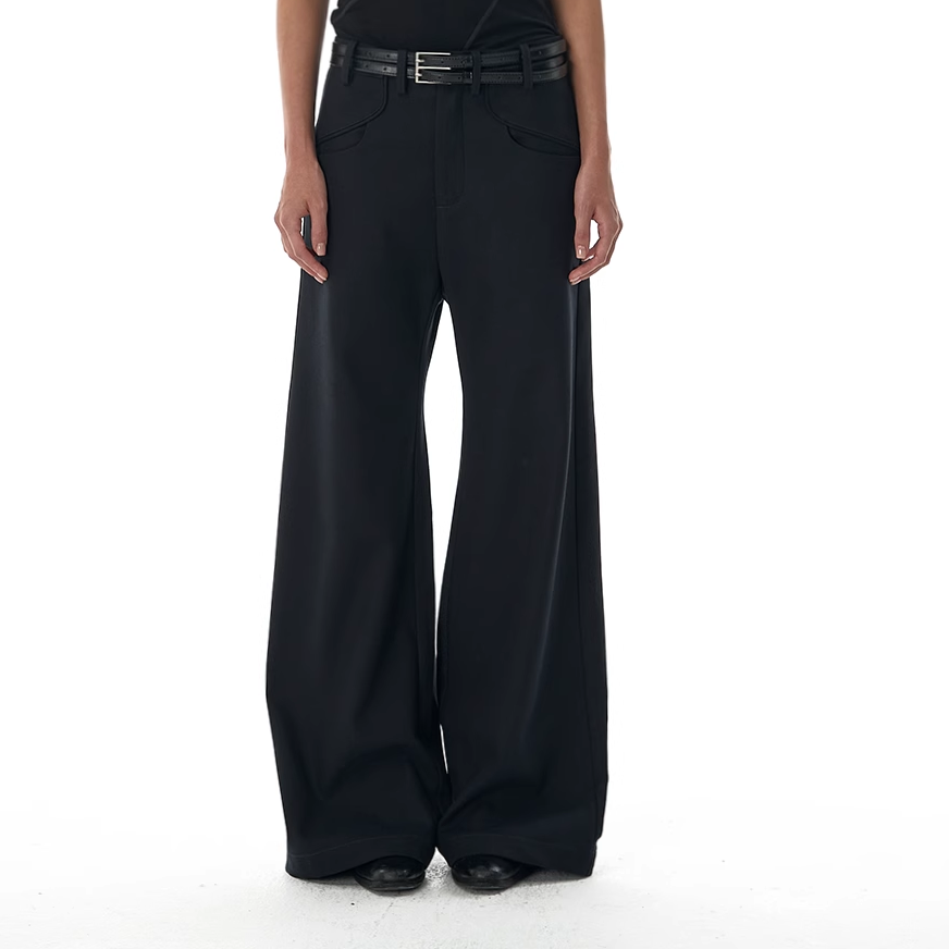 BEVAN UP|Midnight Blue Tencel A-Line Silhouette Pocket Cut Bootcut Pants
