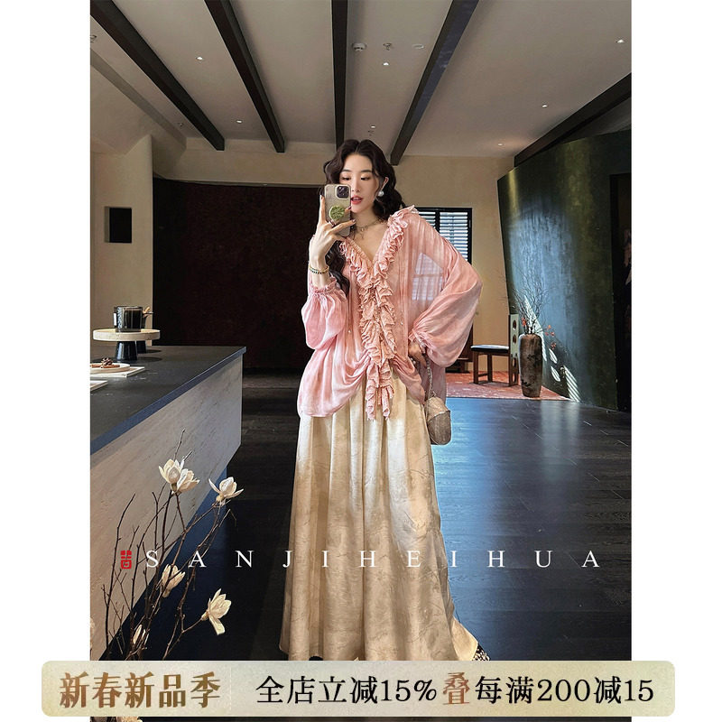 Sanji Black Flower [Mo Xuan] New Chinese texture wide-leg pants drape, old money style skirt casual pants new style