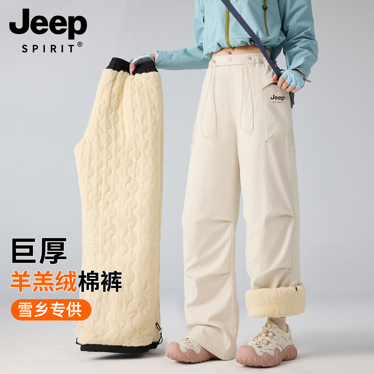 JEEP Assault Pants Women's Winter Winter Cold and Windproof Northeast Cold and Windproof Thickened Fleece Thickened Ski Pants Down Cotton Pants