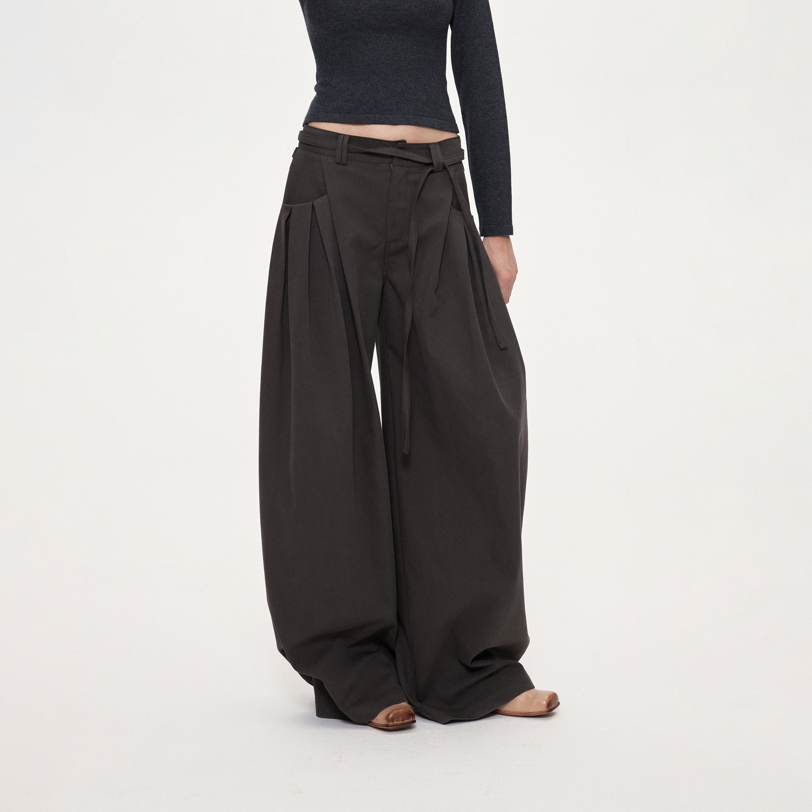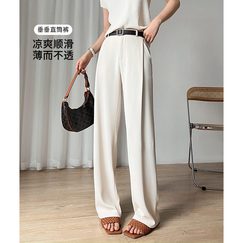 NEVA HU Black Suit Wide-leg Pants Women's Drape 2025 Fall Loose Straight Slacks Floor-length Pants
