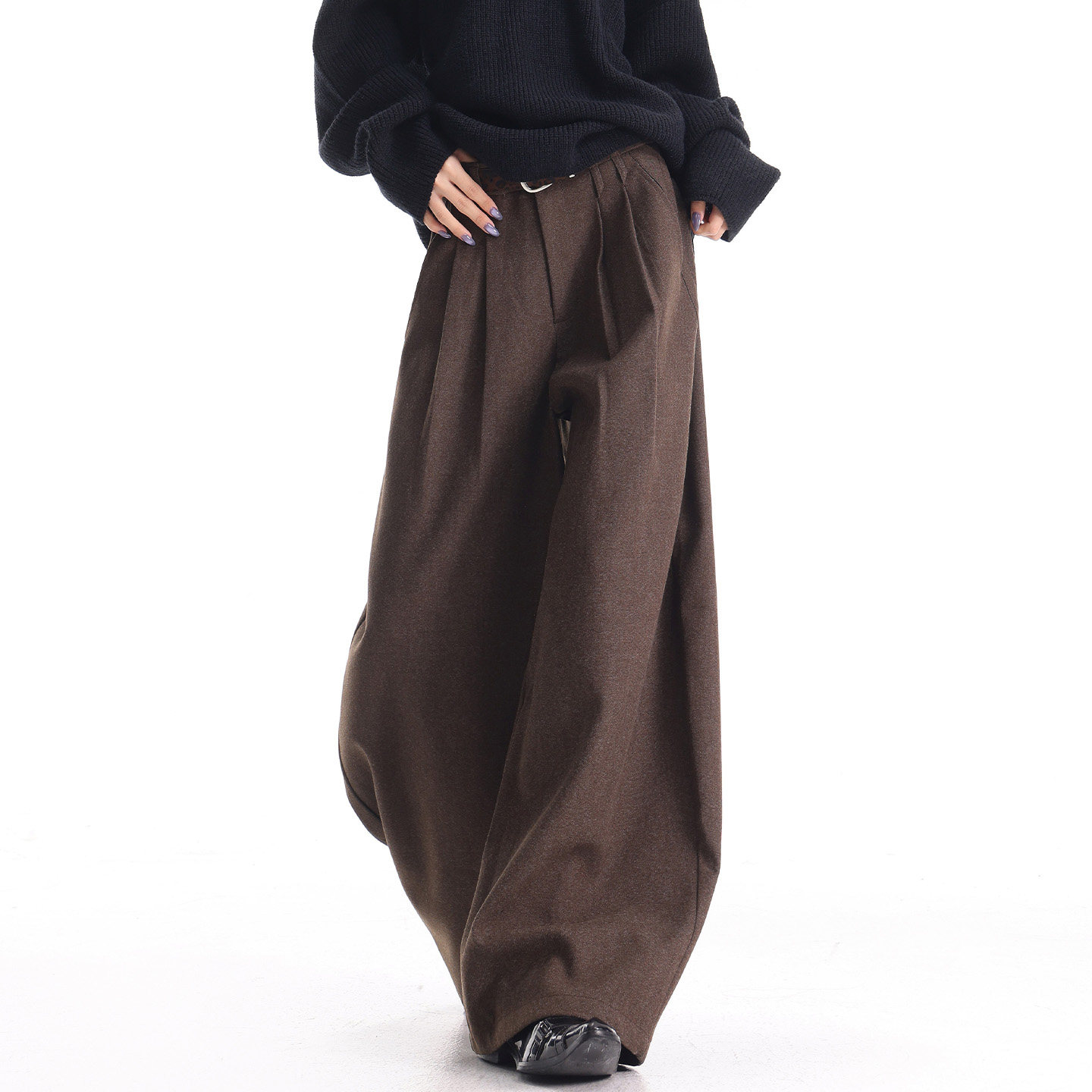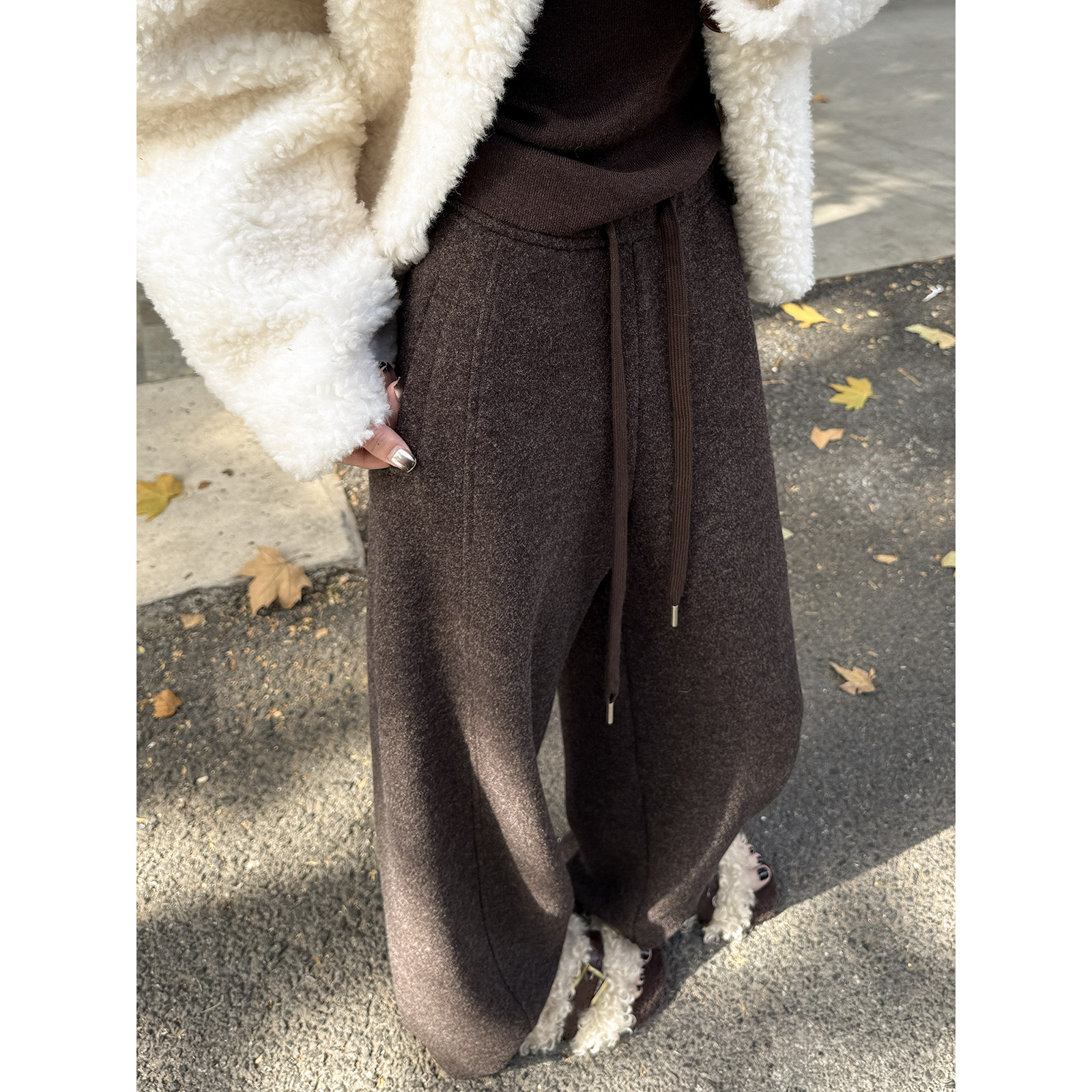 Brown brown wool wide-leg pants for women autumn and winter Australian wool tweed banana scimitar pants plush thickened glutinous rice pants and sweatpants
