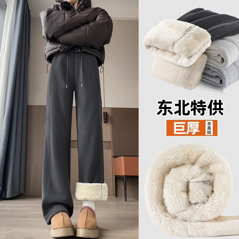 Huge lamb fleece pants women's autumn and winter 2025 new fleece sweatpants casual winter straight wide-leg sweatpants