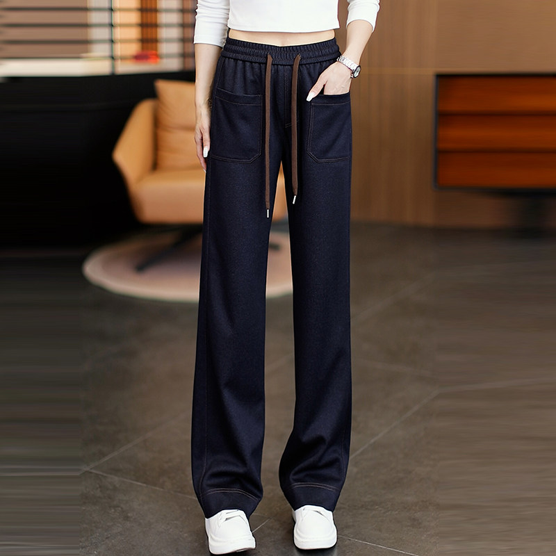 【Anti-fading】Autumn and winter denim blue jeans women's new narrow wide-leg pants plus fleece high-waisted drape straight-leg pants