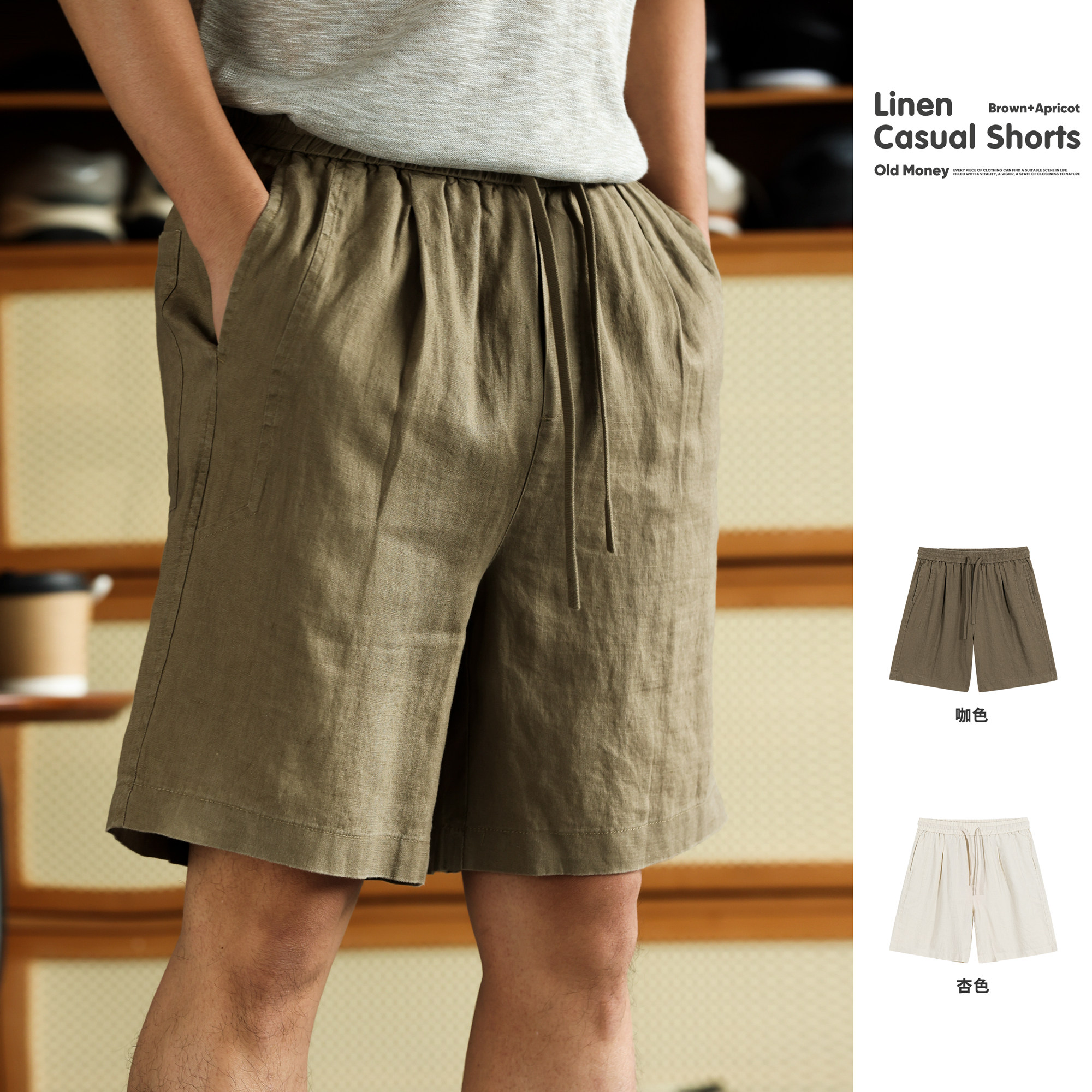 Old money style khaki linen breathable and cool casual shorts men's summer thin Tencel cropped pants straight leg pants