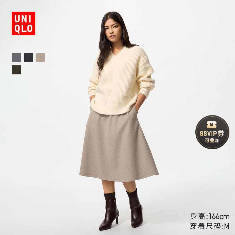 Uniqlo Women's Suede Knit Flared Mid Skirt/Skirt 481434