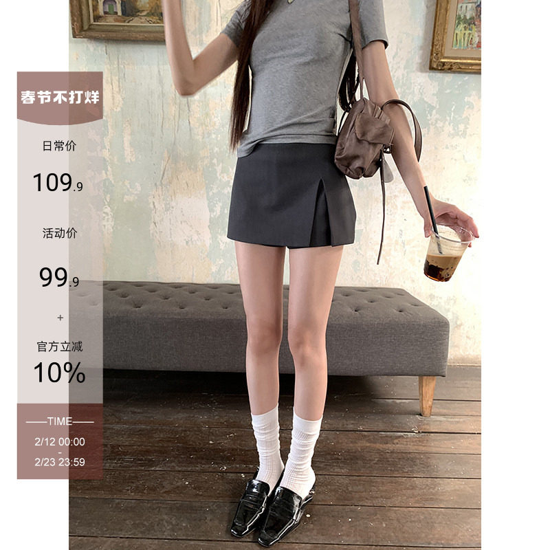 FASC homemade suit gray skirt women's autumn 2025 new hip-hugging skirt black high-waisted short skirt