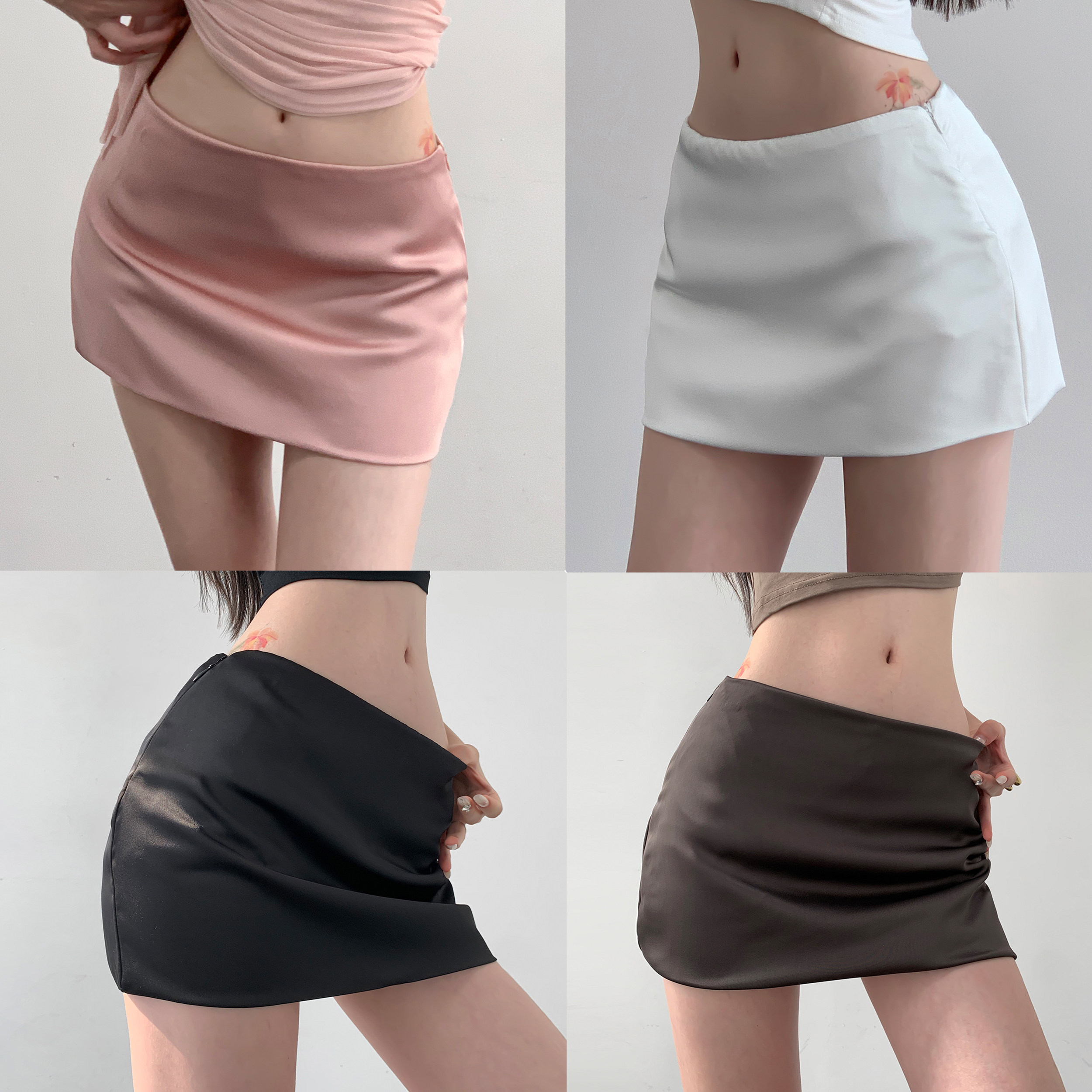 Pinch the waist and cut the waist men's satin low-waisted mini skirt women's summer sexy slimming anti-light A-line hip-covering short skirt trend