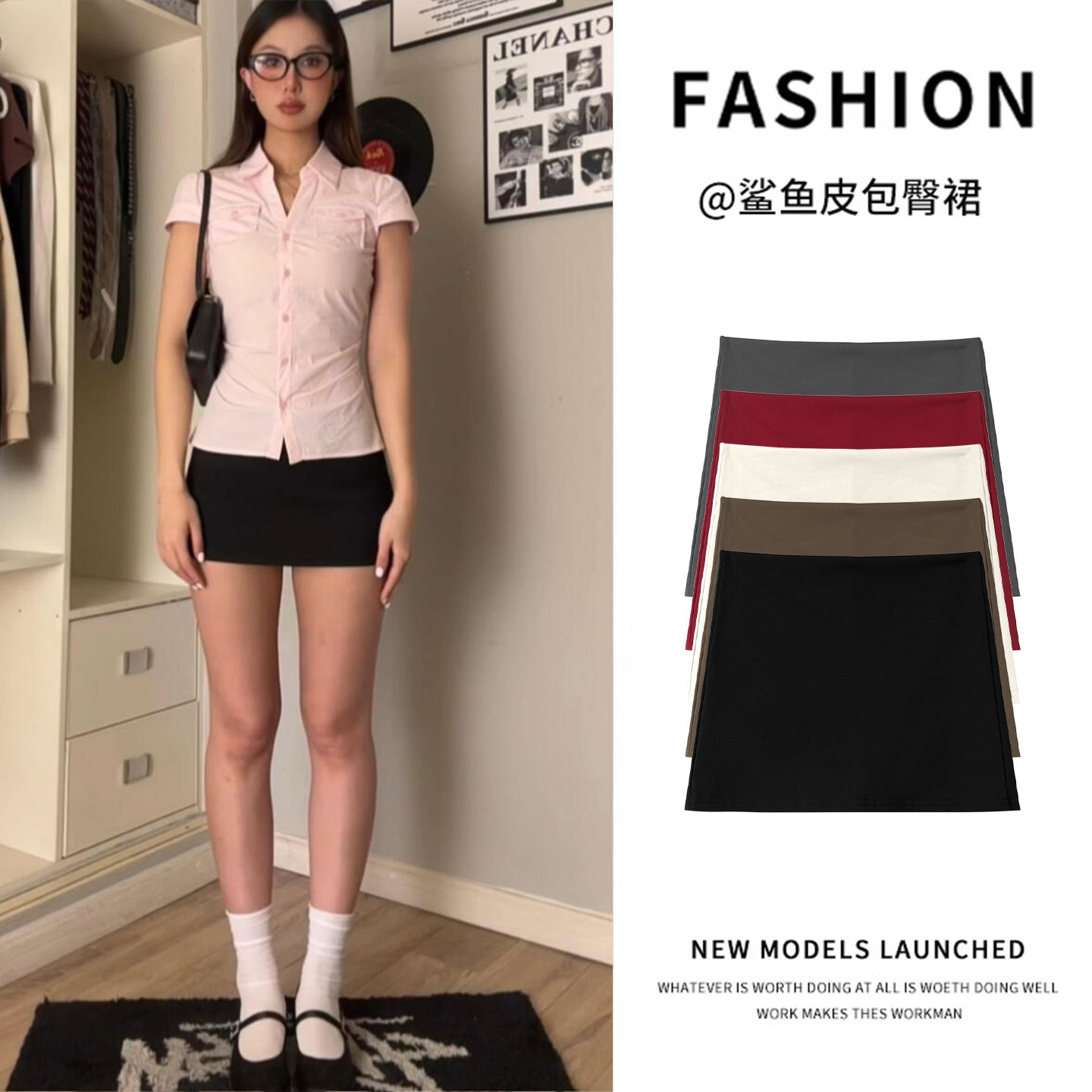 Black hot girl shark skin hip skirt women's summer 2025 new high-waisted slimming American short skirt A-line skirt