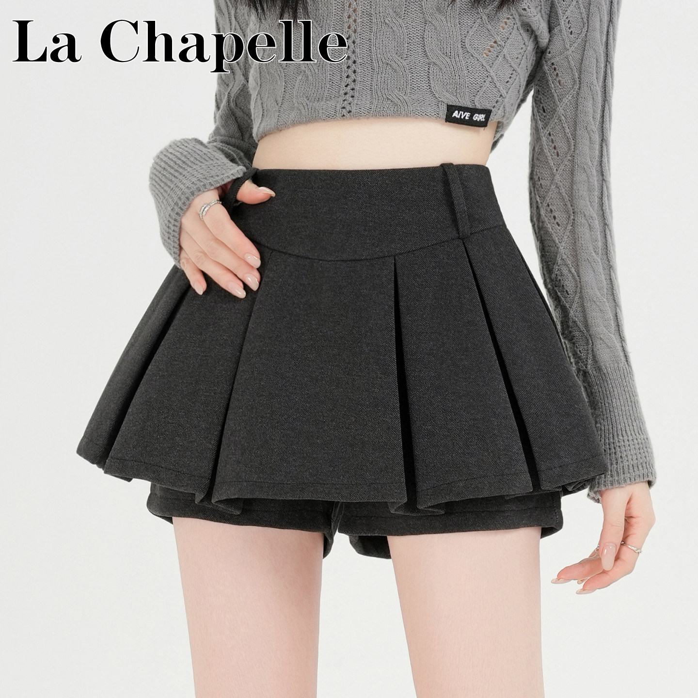 La Chapelle Autumn and Winter Gray Tweed Pleated Skirt Girls Hot Girls High Waist Slim Small A-Line Culottes