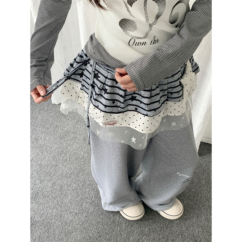 Solkatt cute striped star lace spliced butt curtain skirt female niche design base skirt