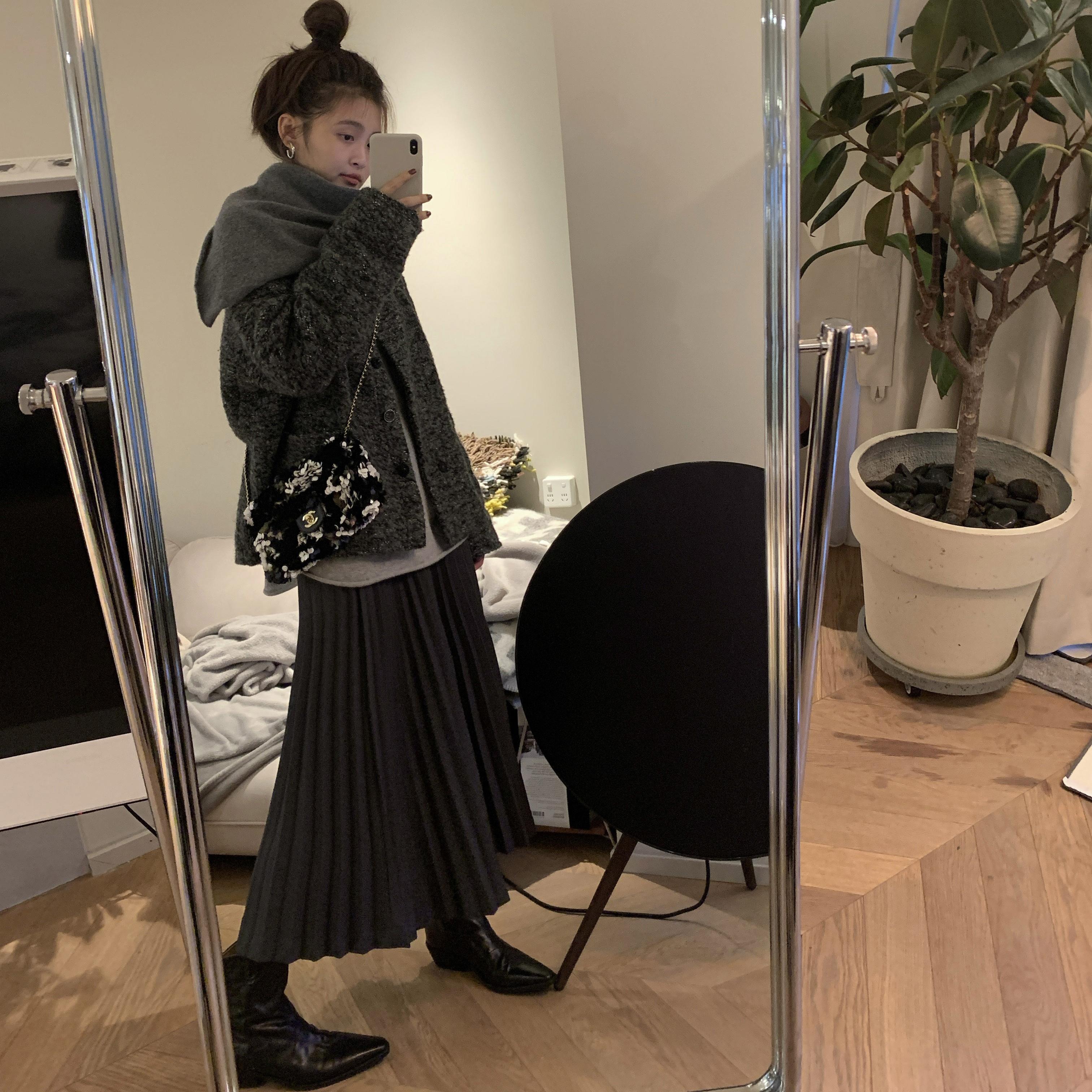 iiiipupu24FW classic cleanfit super slim texture full of pleated skirts, midi skirts, long skirts