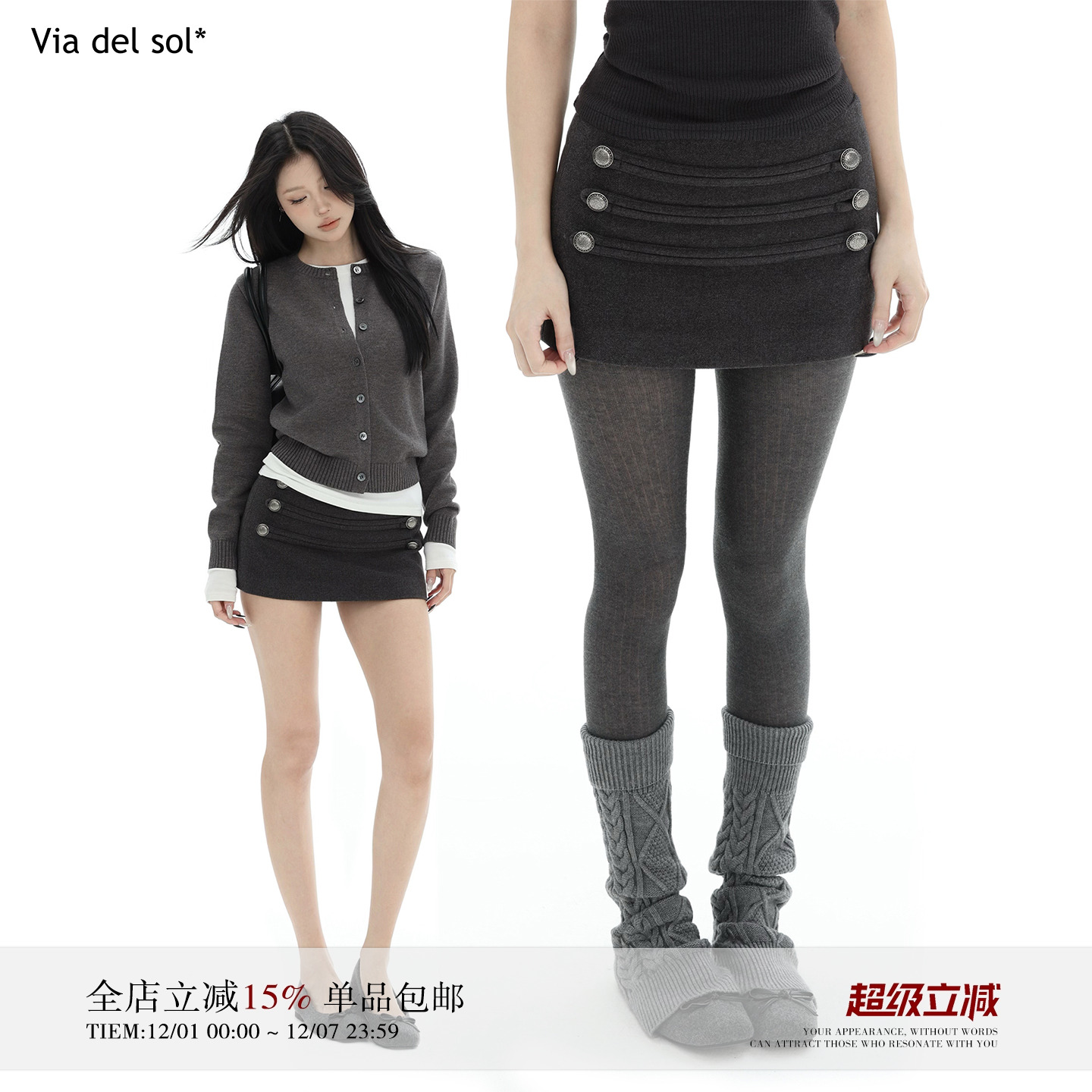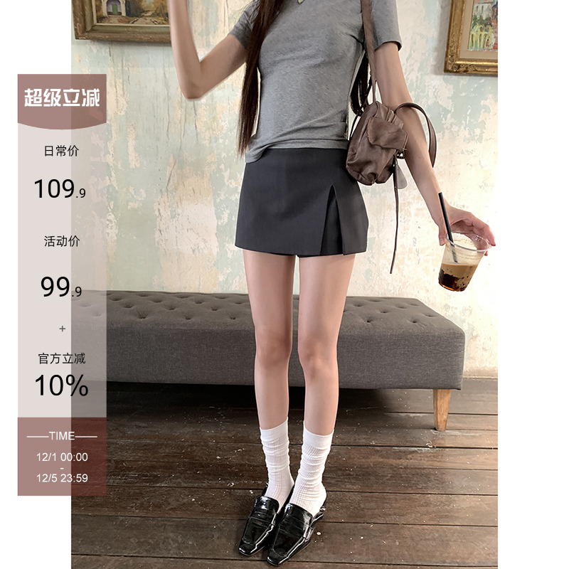 FASC homemade suit gray skirt women's autumn 2025 new hip-hugging skirt black high-waisted short skirt