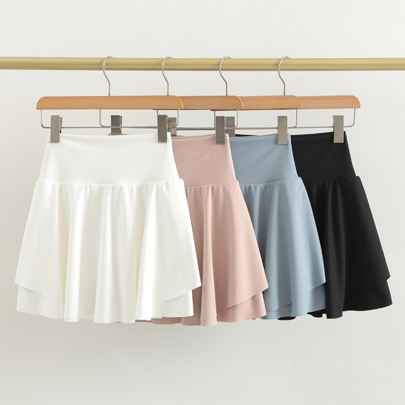 Anti-light sports shorts solid color fake two-piece running pants skirt stretch running slacks show legs long skirt women