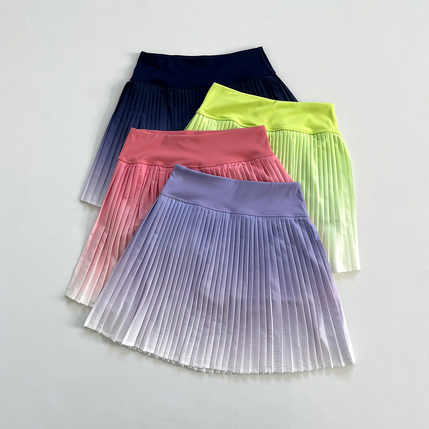 Summer new anti-light gradient sports skirt high-waisted slimming pleated skirt running fitness yoga skirt