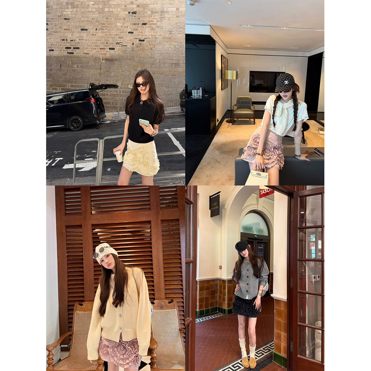 aaaaxbbb Angelia Flower Set Heavy Industry Three-dimensional Flower Short Skirt Handmade Pleated Design Half Skirt Woman