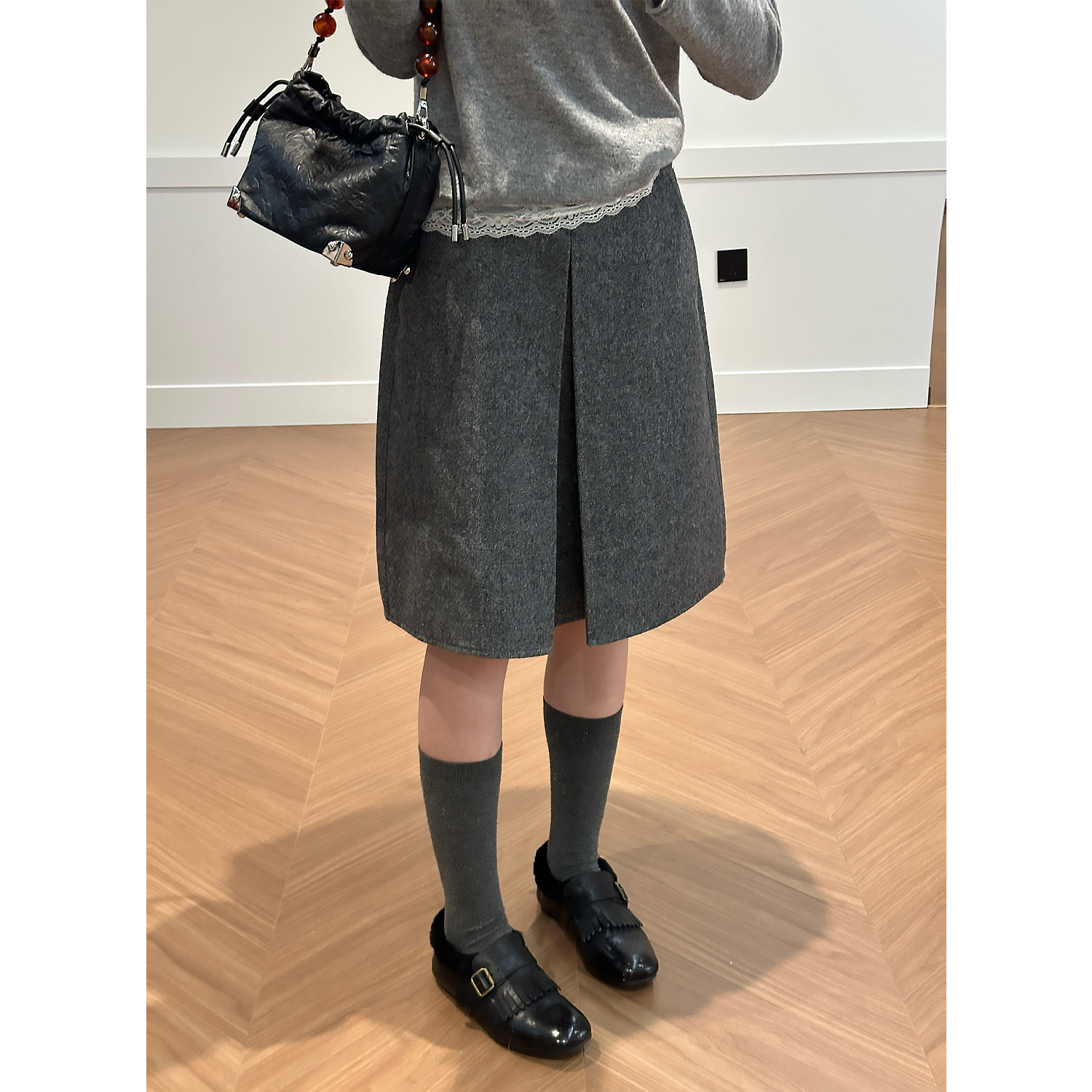 Iszizii wore a gray pleated skirt on both sides, a midskirt and an intellectual autumn/winter wool woolen skirt