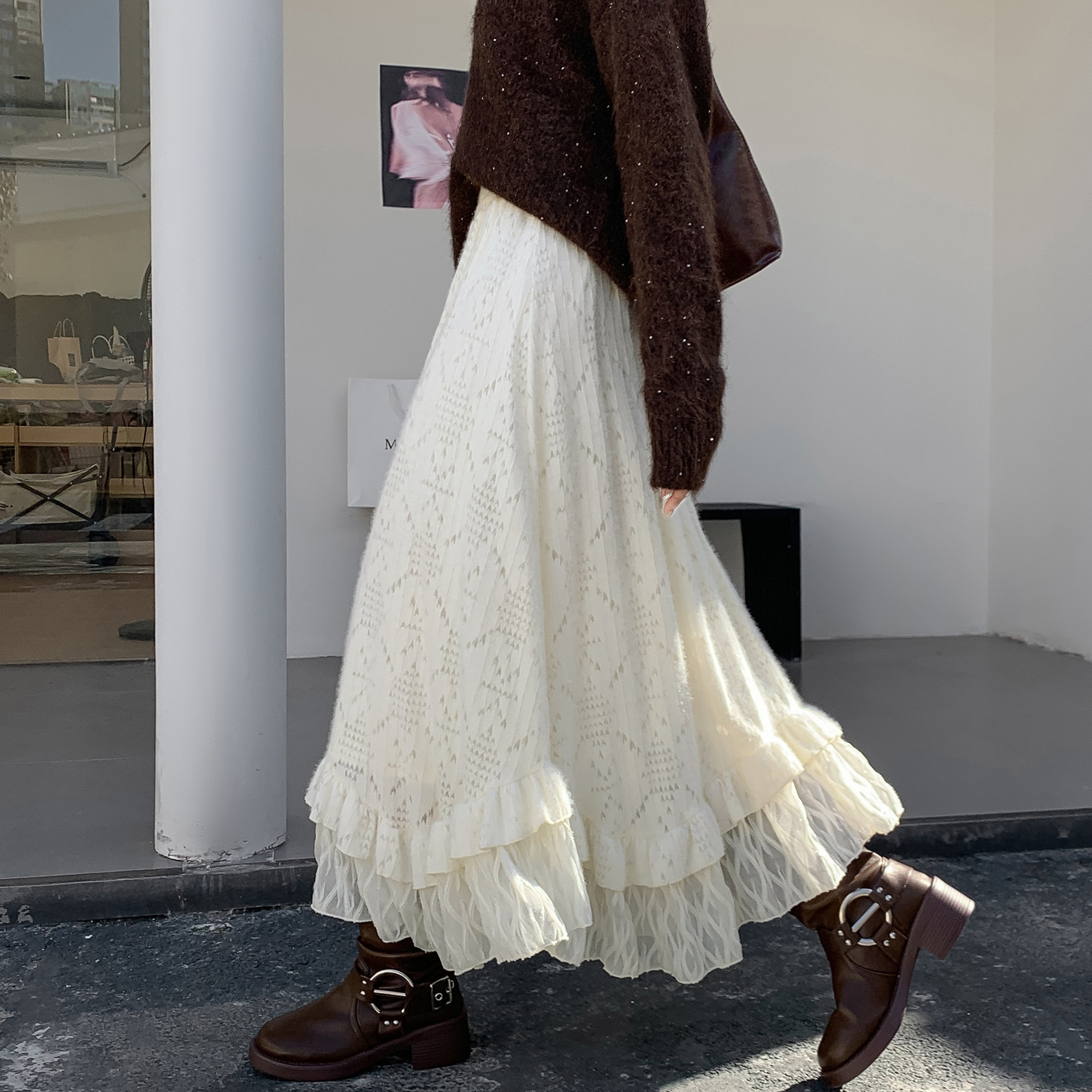 Super good-looking winter lace skirt women's 2025 new winter high-waisted temperament cake skirt irregular A-line long skirt