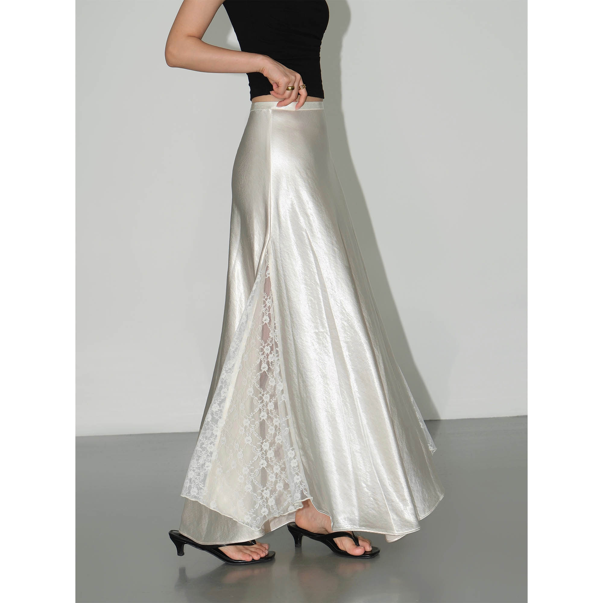 La Chapelle silk satin skirt women's autumn and winter white acetate long skirt draped skirt hip-hugging mermaid skirt