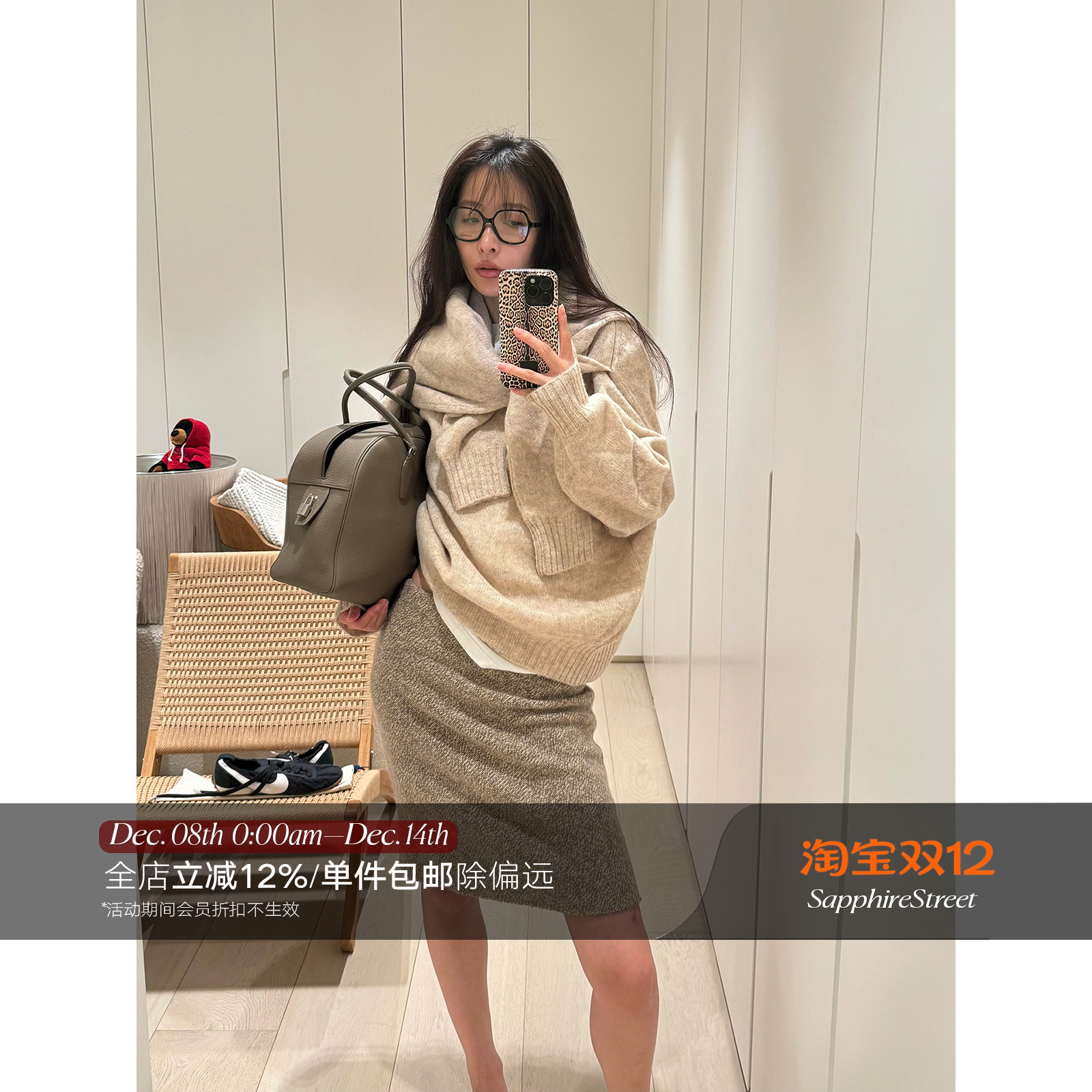 Gray wool tweed skirt women's autumn and winter season long skirt straight temperament slimming knit A-line slit hip skirt