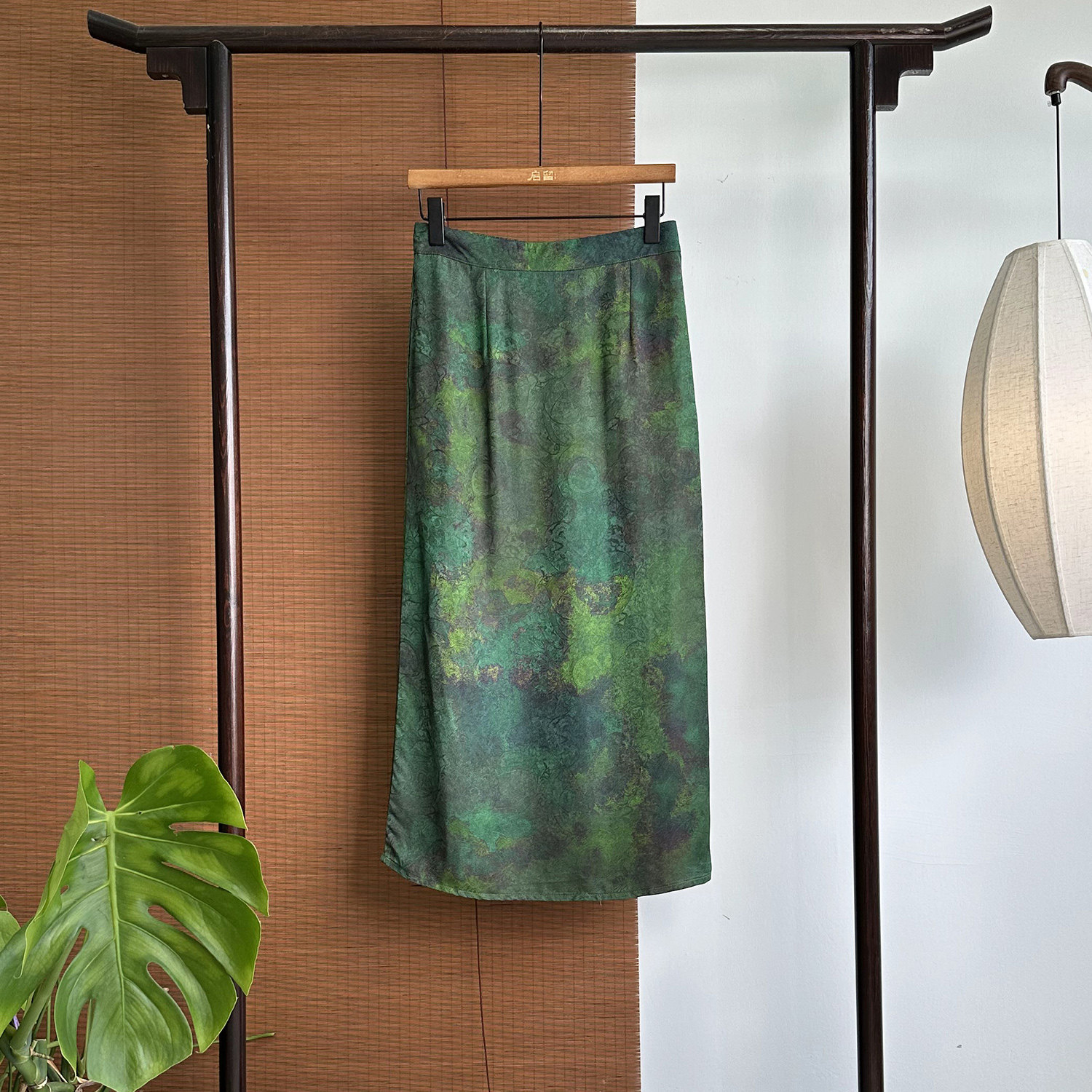 【252087】Qing'an Emerald Shadow Dream New Chinese National Style Fashion and Versatile Carved Skirt