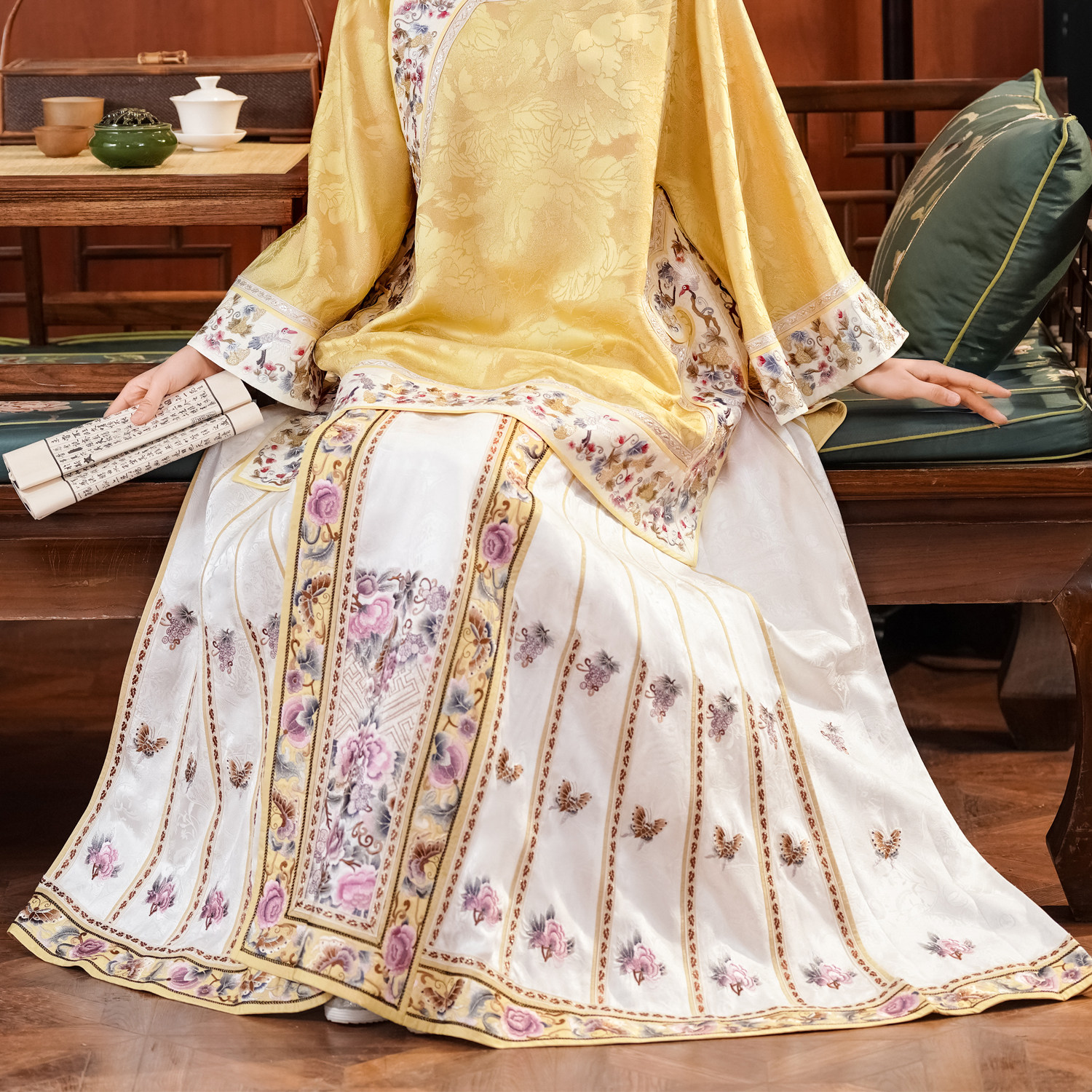 Spring Flower Butterfly Run-Petticoat in Stock | New Chinese-style primed three-dimensional pleated skirt wears layered Hanfu cheongsam petticoat as the base