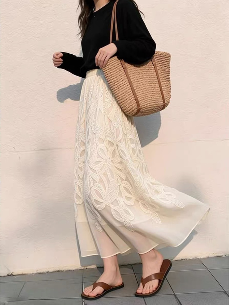 Small man, high-end, gentle style, high waist, slimming A-line skirt, pear-shaped figure, covering the crotch, white skirt, women's spring