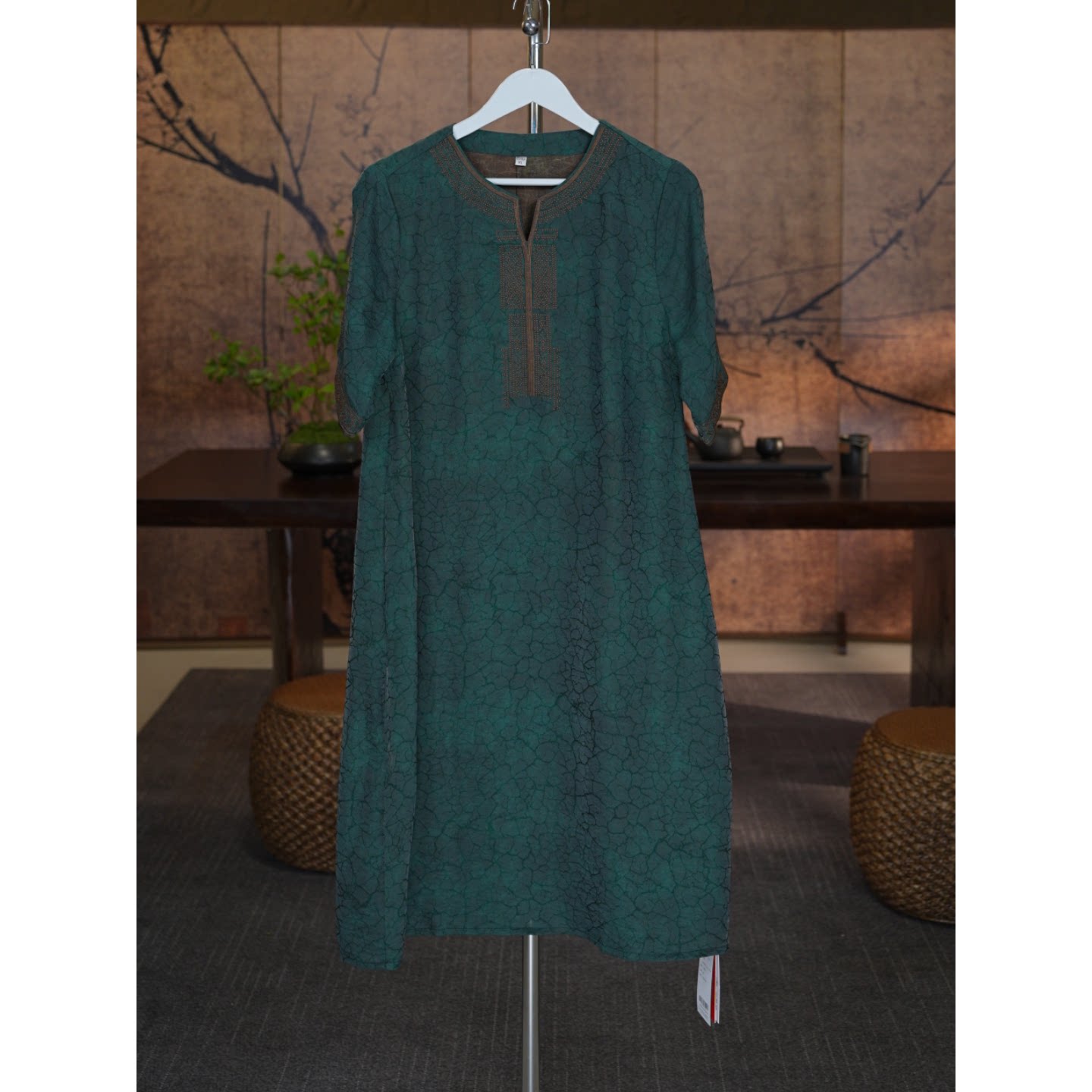 New Chinese style fragrant cloud gauze ice crack jacquard heavy industry embroidery V-neck dress old money