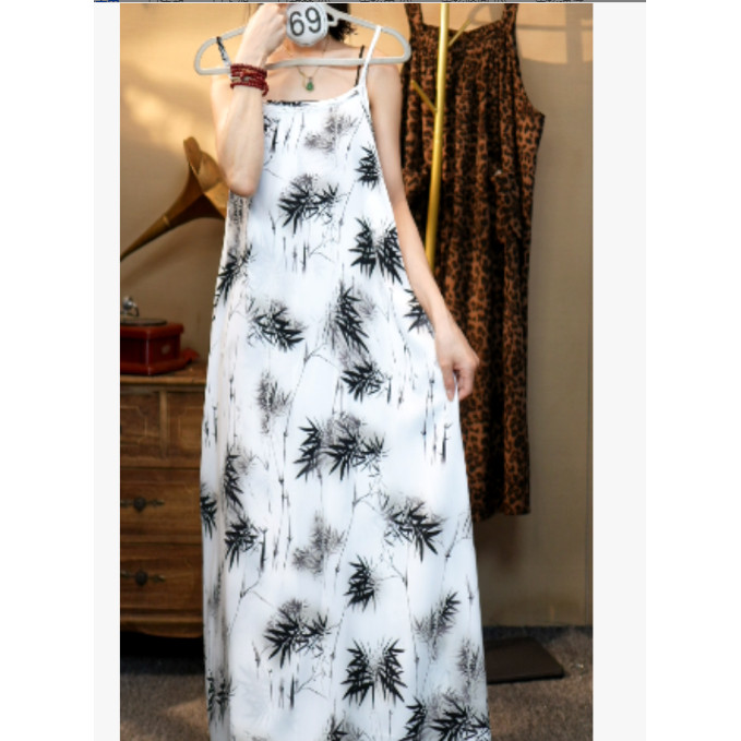 69 Ink bamboo leaf print white slip dress