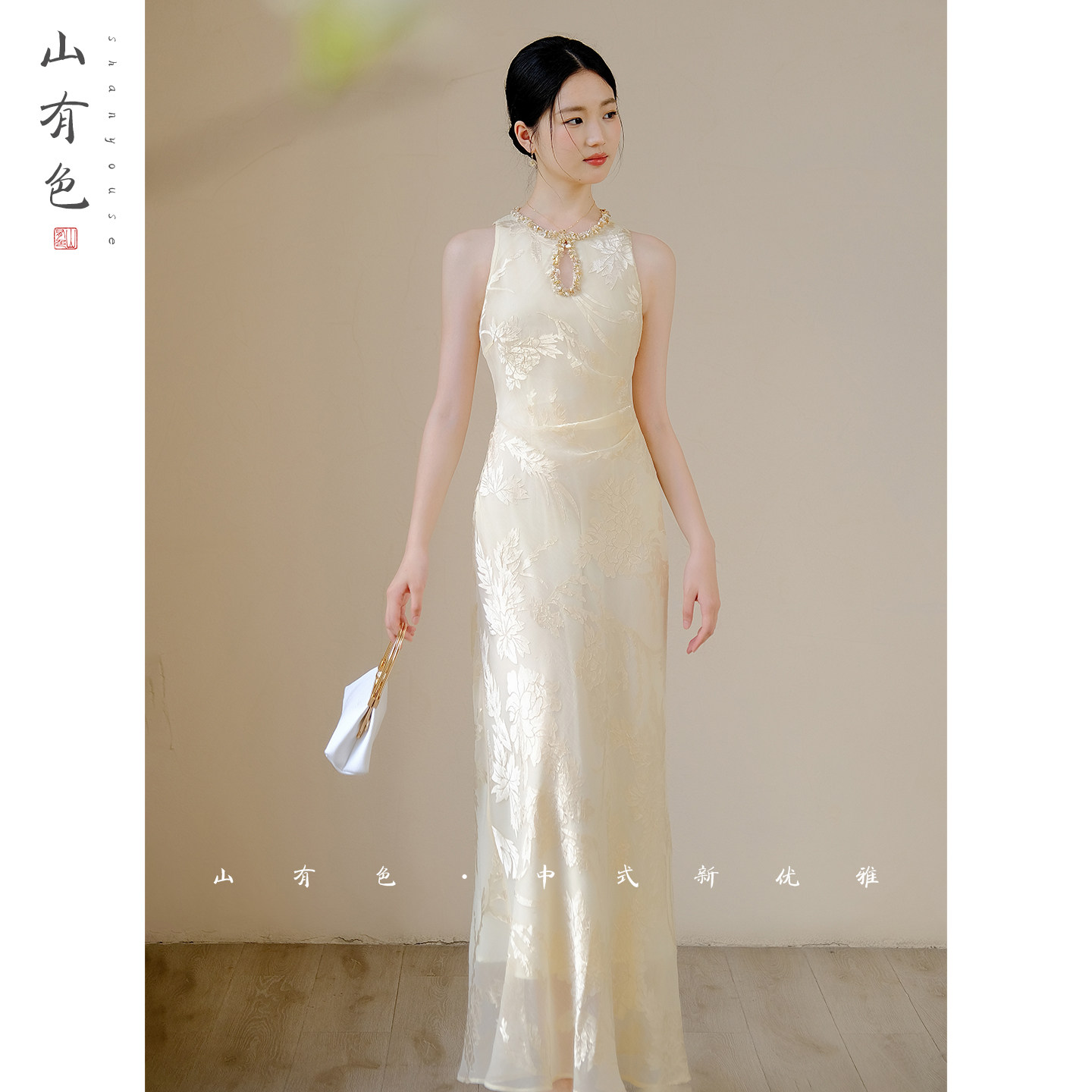 Yunshu original interwoven jacquard fragrant cloud yarn new Chinese improved cheongsam dress A-line skirt long robe summer