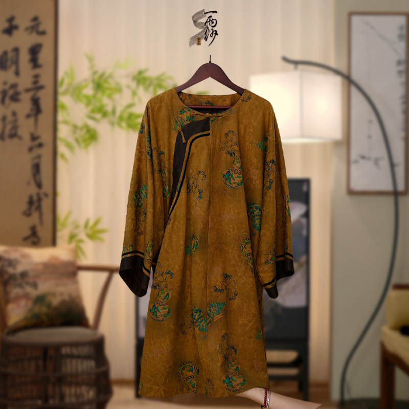 【Elegant Bamboo ● Xiangyun Yarn】253208 mulberry silk fragrant cloud gauze dress robe new Chinese style 50
