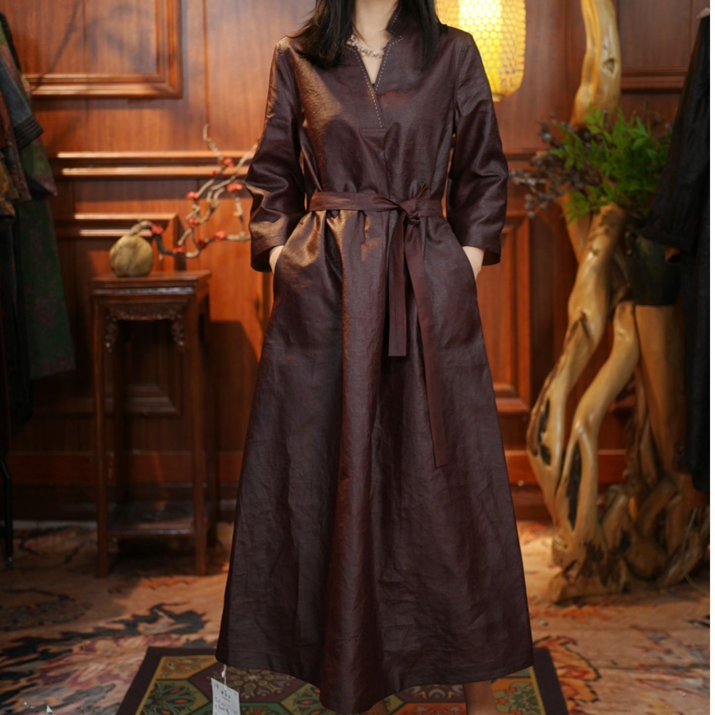 [Fengwei Old Material Three Classics] 239790 Shen Ha Ha Sang silk fragrant cloud gauze dress robe new Chinese style 45