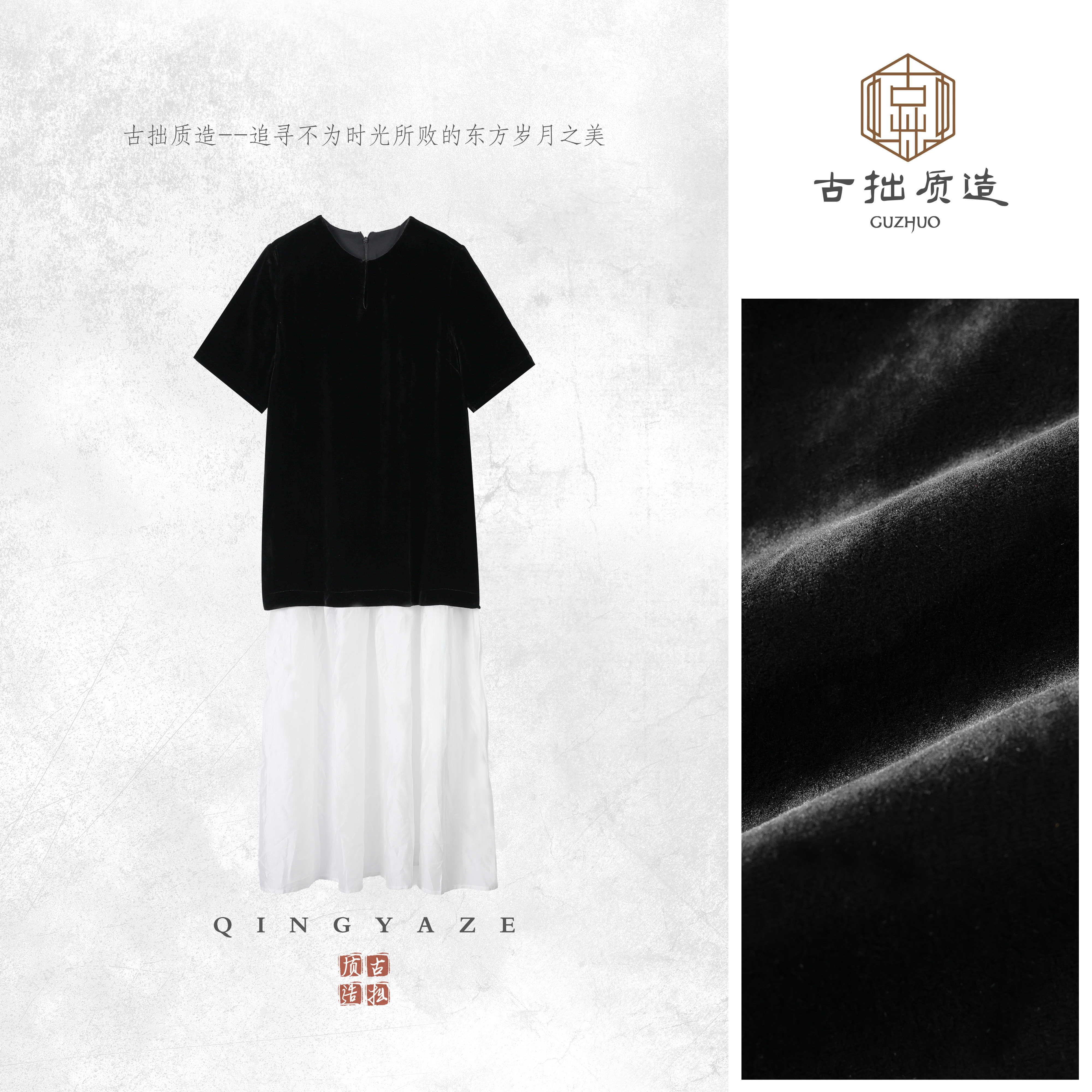 [Black velvet haute couture skirt] 256035 Shen Ha Sang silk gray cloth real velvet dress robe new Chinese style