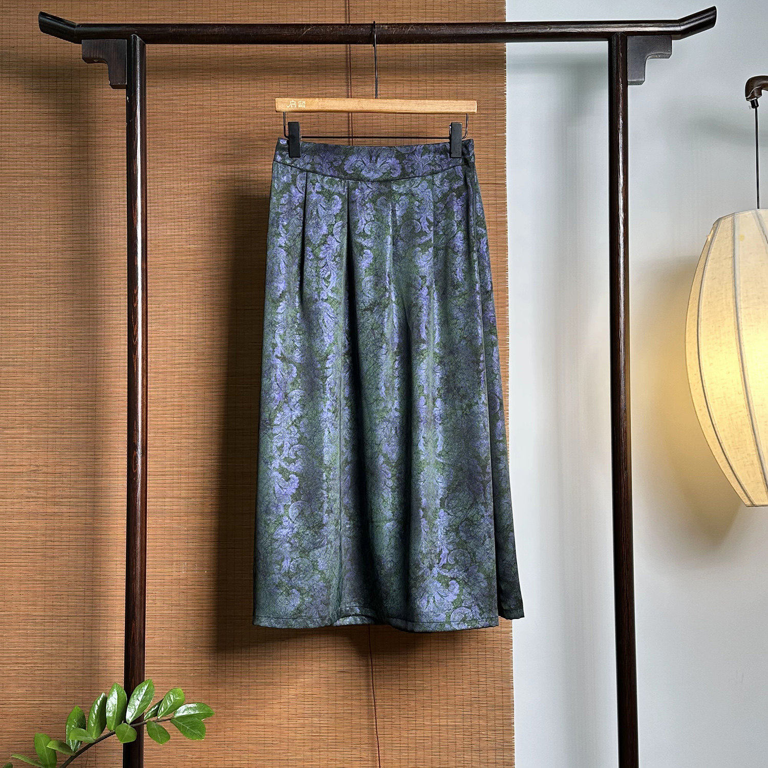 【Spot-Sale】Chinese national style skirt women's 2026 spring new niche jacquard buckle high-waisted long skirt
