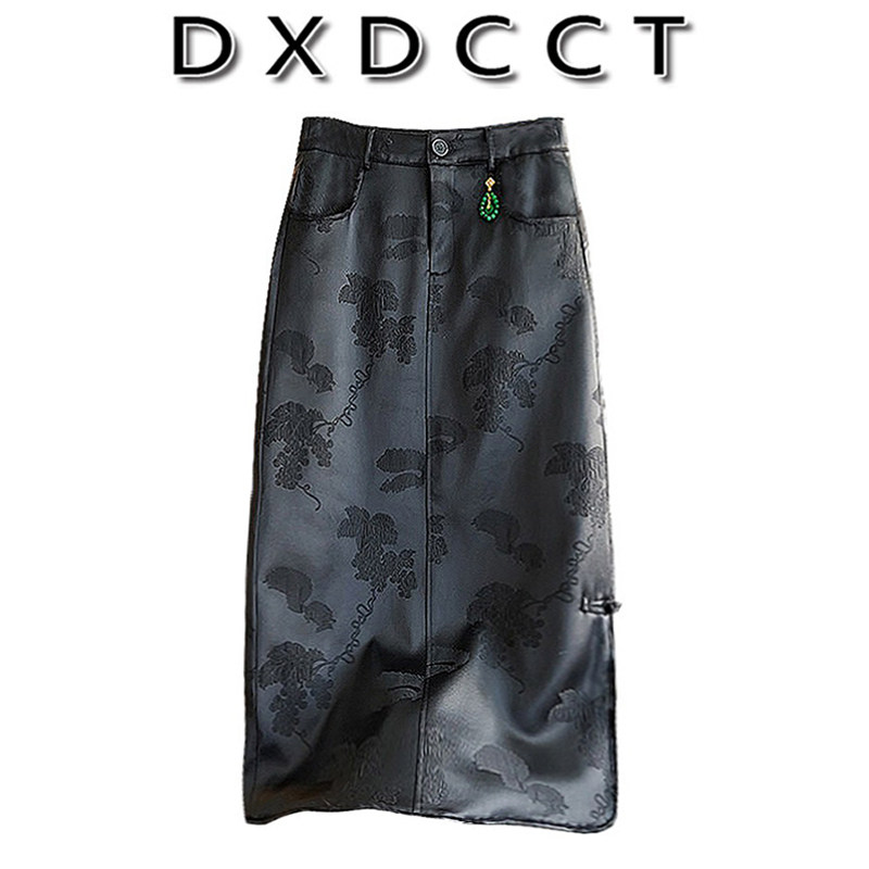 Big-name withdrawal of cabinet women's clothing retro Chinese hip skirt female high-waisted temperament versatile mid-length slit acetate skirt