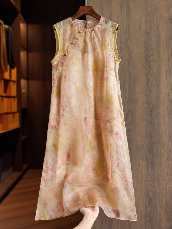 New Chinese vintage, silk, mulberry silk, fragrant cloud yarn, organza dress
