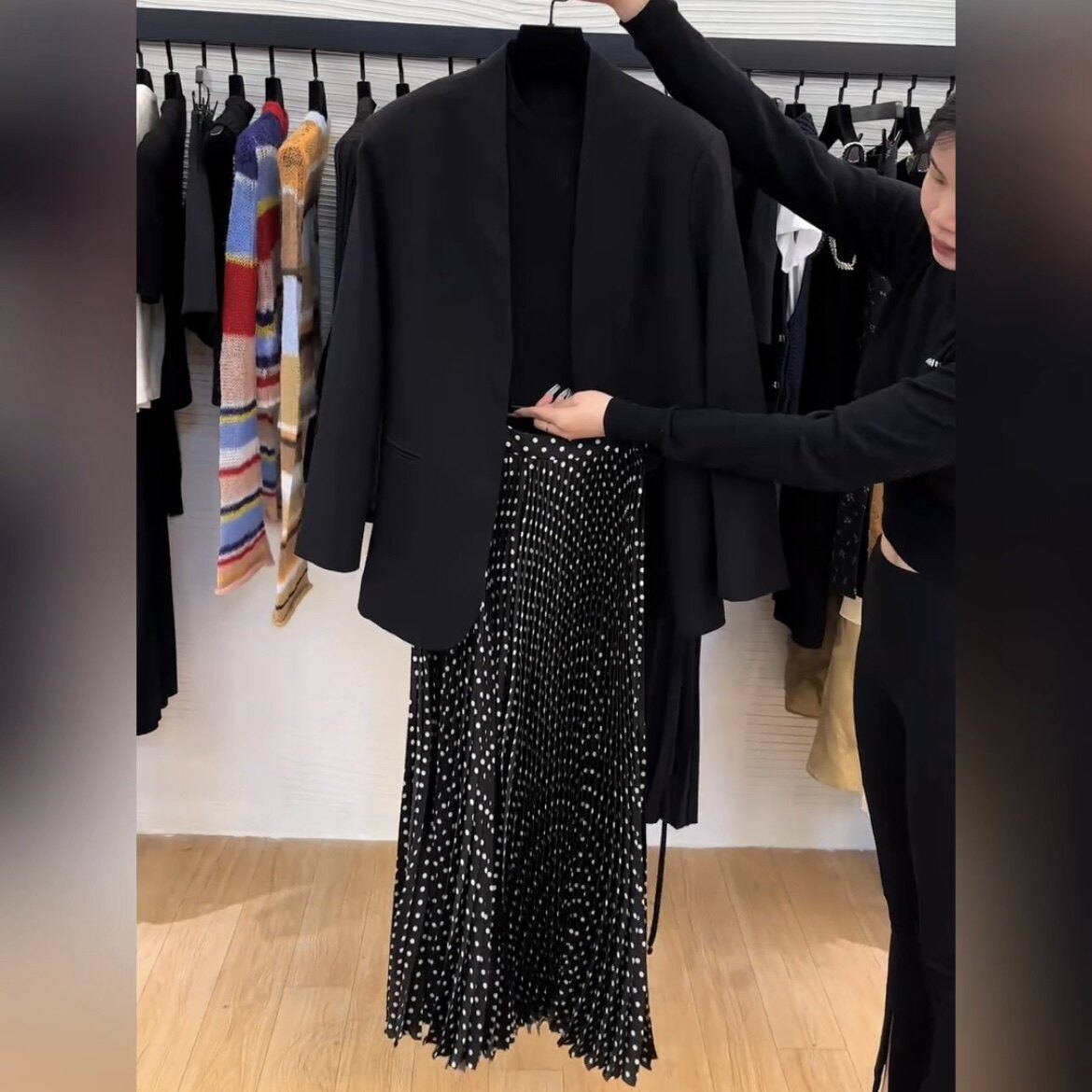 2025 spring/summer new retro temperament, elegant fashion high-end pleated skirt, slimming high-waisted polka dot skirt for women