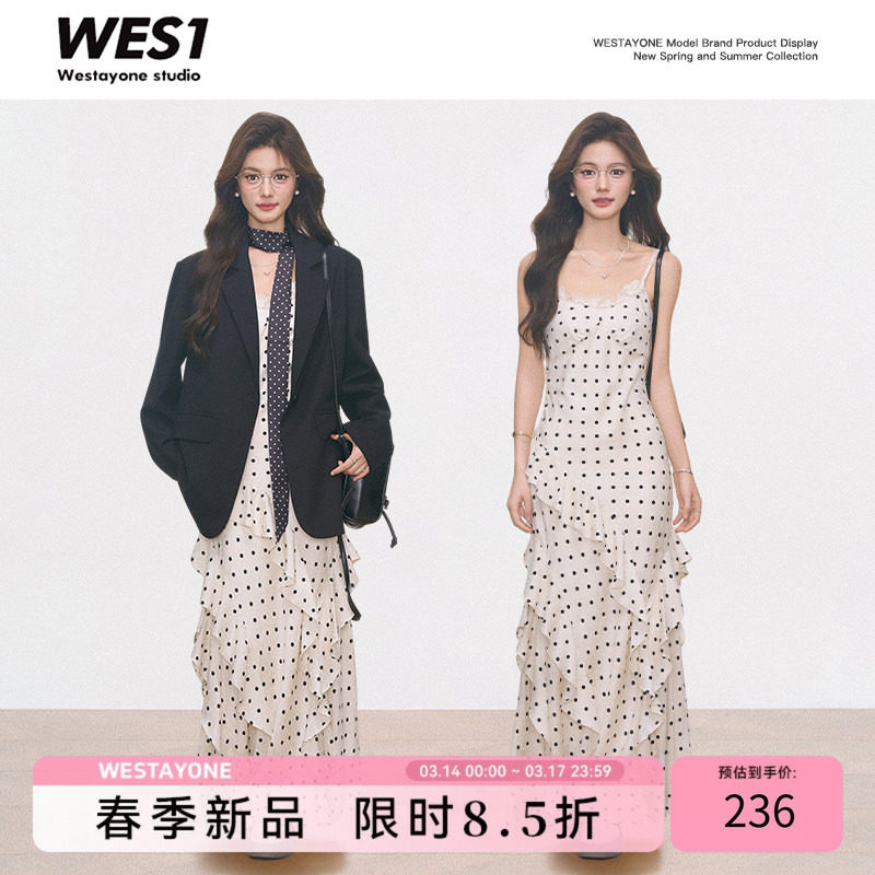 【New】WESTAYONE polka dot dress women's spring and summer slimming commuting high-end + black suit