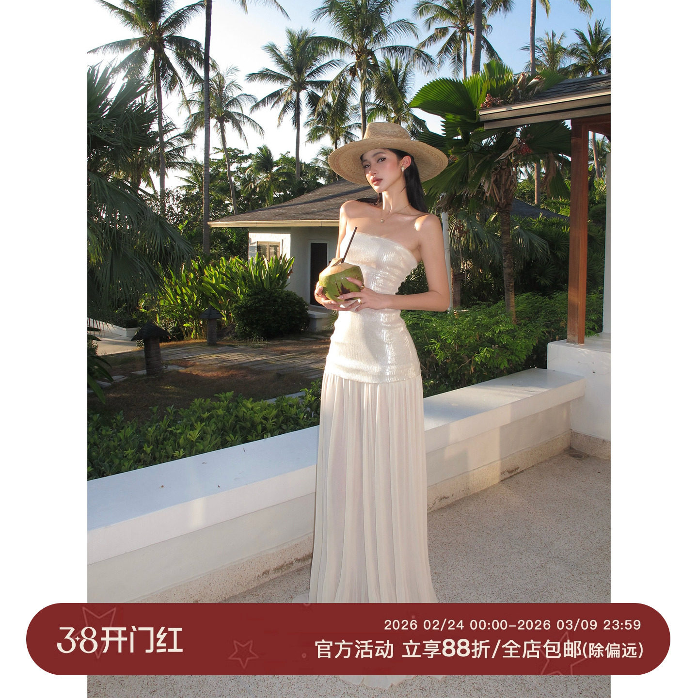 Super good-looking Sanya wears seaside French resort beach backless suspender dress summer 2025 new small man