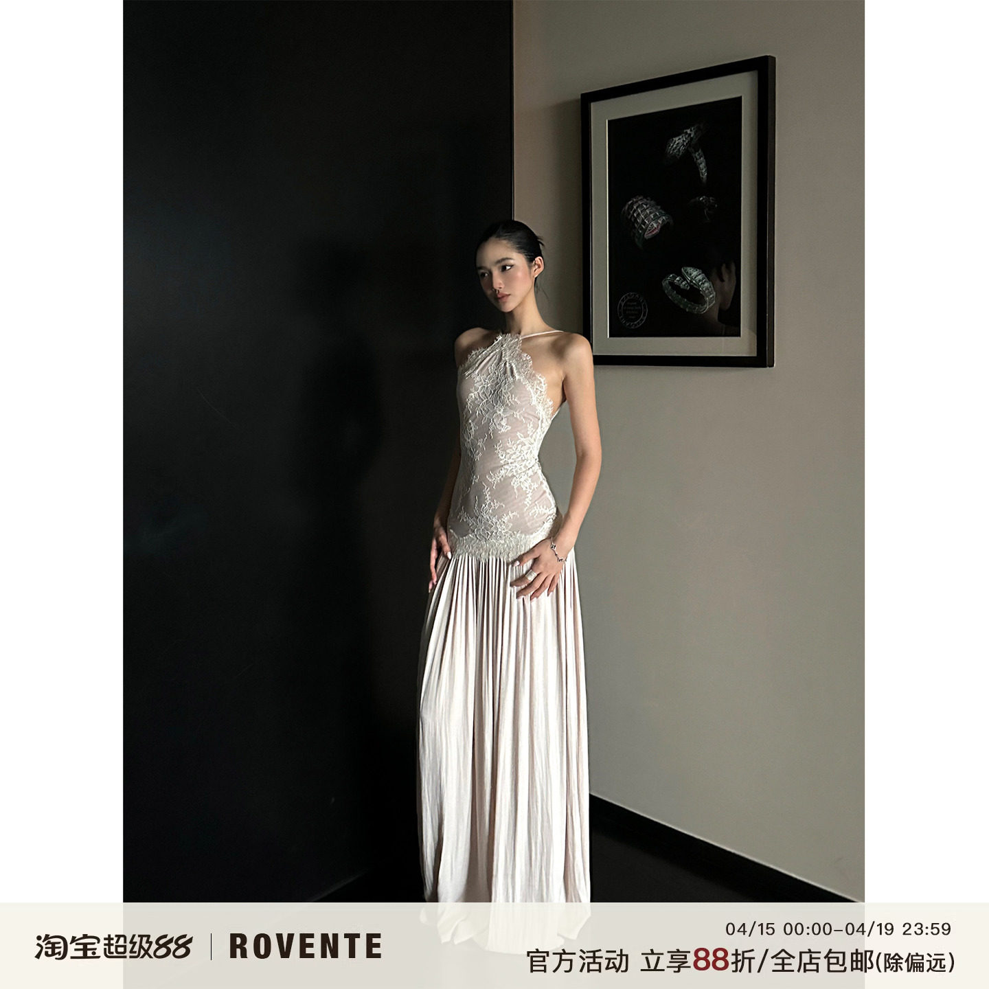 rovente lace panelled camisole dress feminine socialite holiday birthday dress cinched waist backless maxi dress
