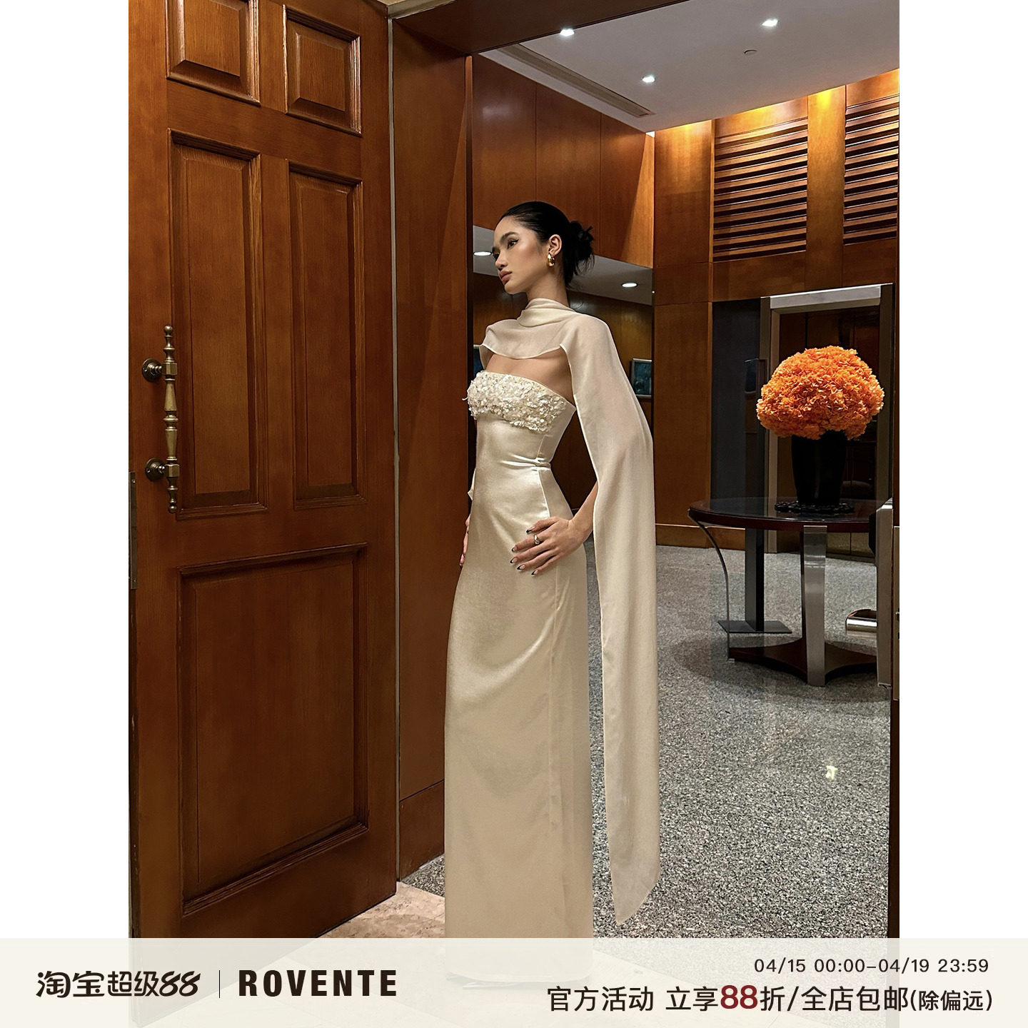rovente streamer feast white bandeau dress female slim slim shawl sequin celebrity dress maxi dress
