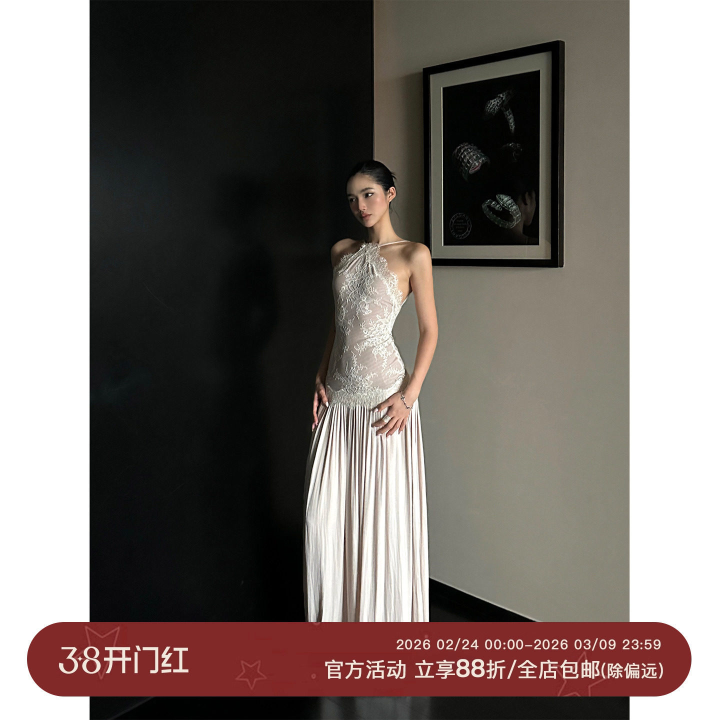 Zhao Sanguan Coffee/Beige Sexy Lace Suspender Dress Women's Spring and Summer New 2026 French Retro