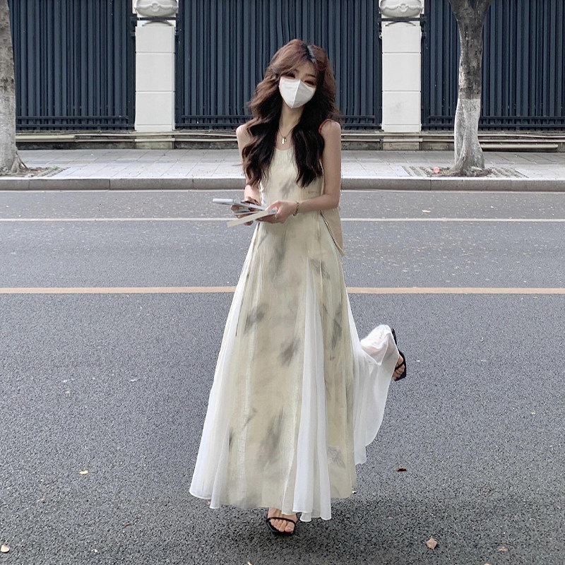 New Chinese slip dress female niche design sense 2026 summer new giant good-looking ink temperament national style long skirt