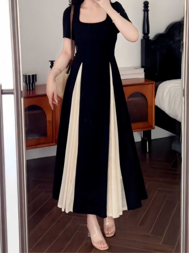 Alex Stevens Kendou square neck pleated waist slip dress sexy hip skirt women's fall summer skirt