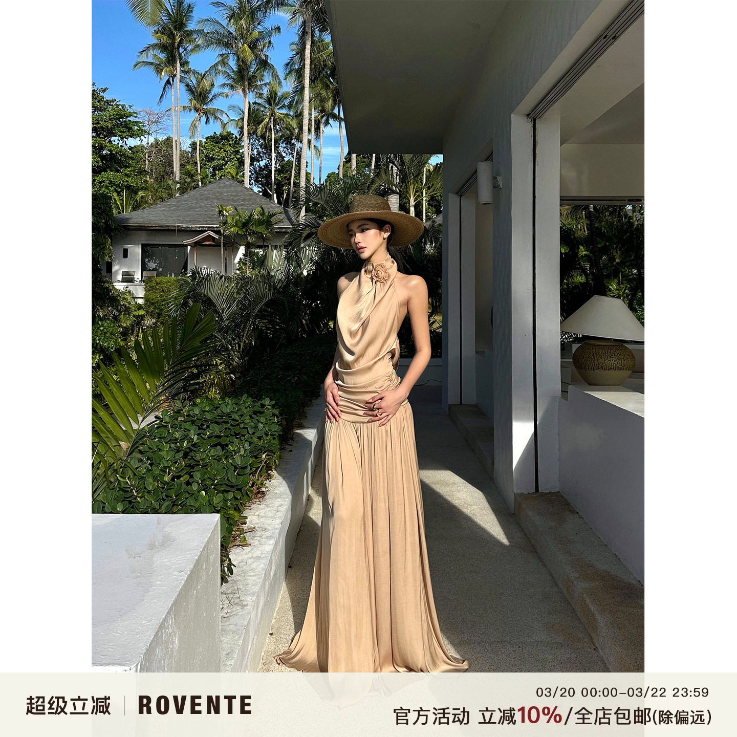 rovente Eaton beauty halterneck swing collar dress temperament celebrity dress seaside suspender backless long skirt