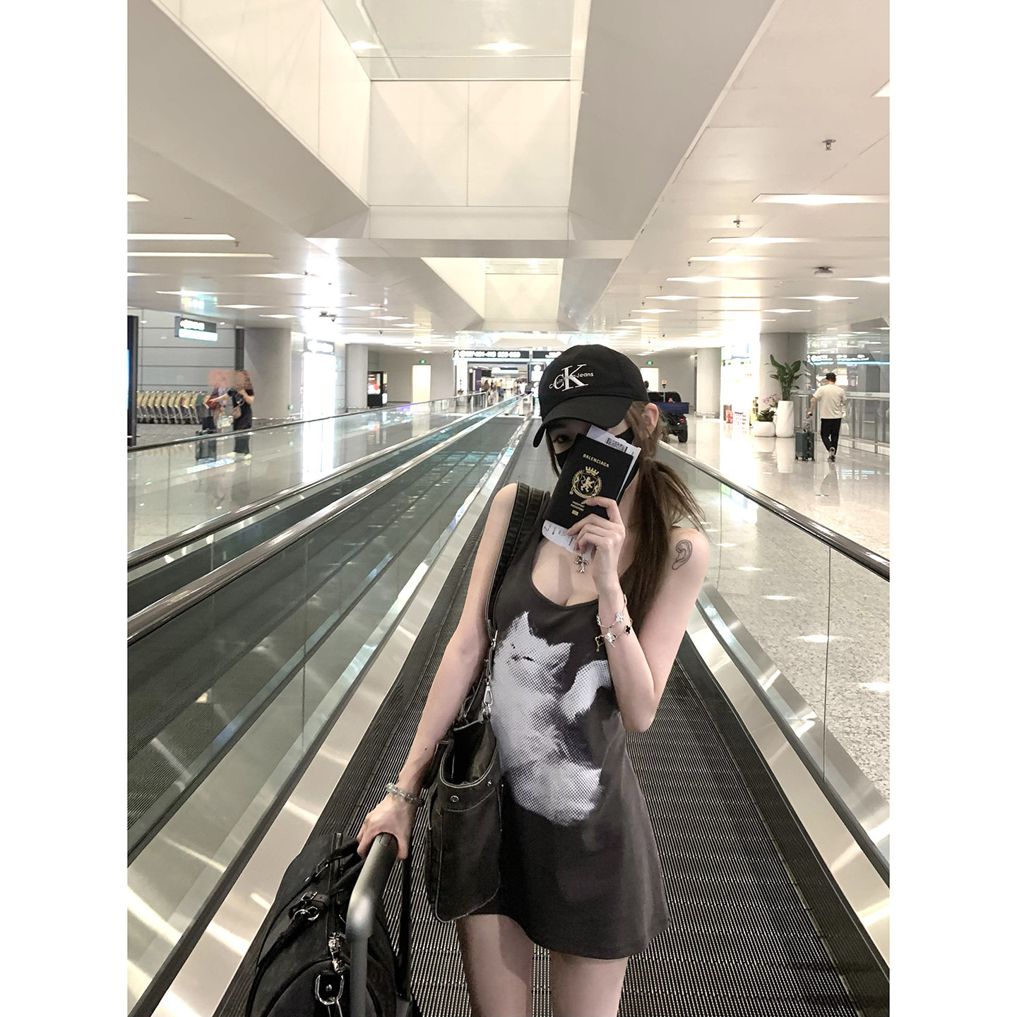 Suuuicee Raphael's Cat Pure Desire Big Neckline Strappy Sundress Cat Print Vest Top